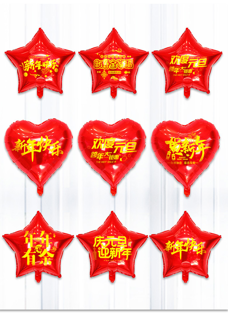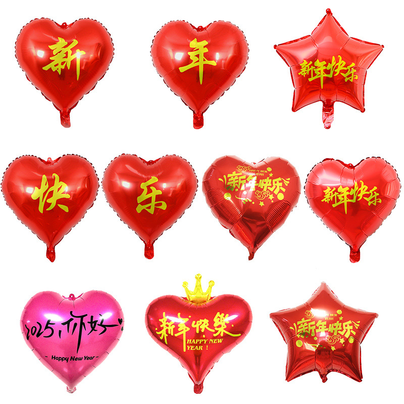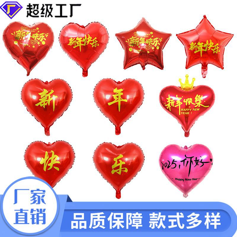 2024年新年学校パーティー装飾18インチ赤い新年おめでとうハート型五芒星アルミ膜風船卸売り