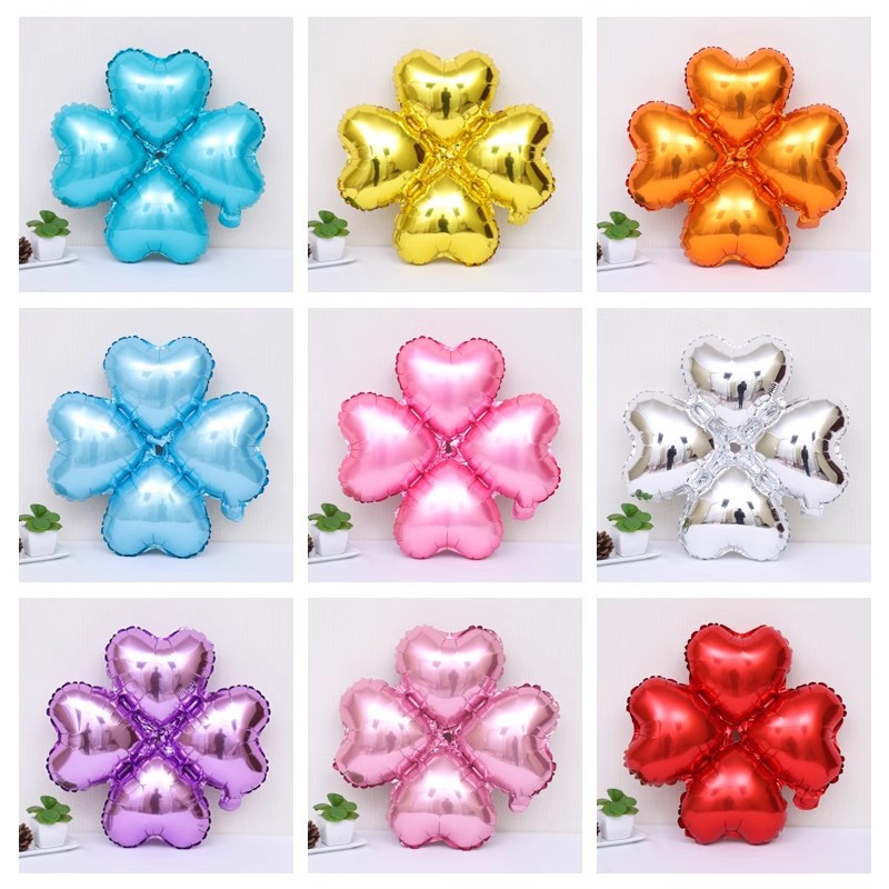 新年の元旦のクリスマスの赤い四つ葉の草のアルミニウムの膜の風船はデパートの開業の店の雰囲気のシーンの配置を飾ります。