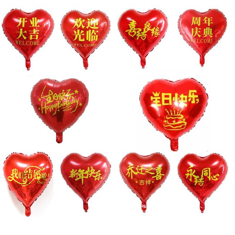 アルミ膜風船18インチプリントハート形歓迎来周年祝典喬迁の喜開業大吉結婚風船