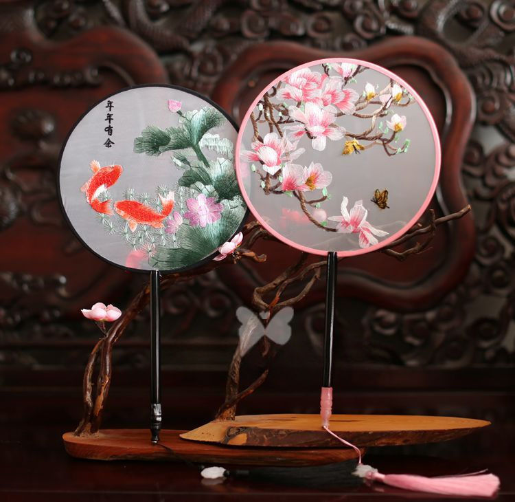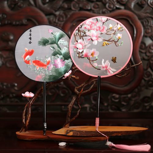 レトロ宮廷団扇両面刺繍円扇中国風漢服ショーダンス扇子結婚式撮影道具