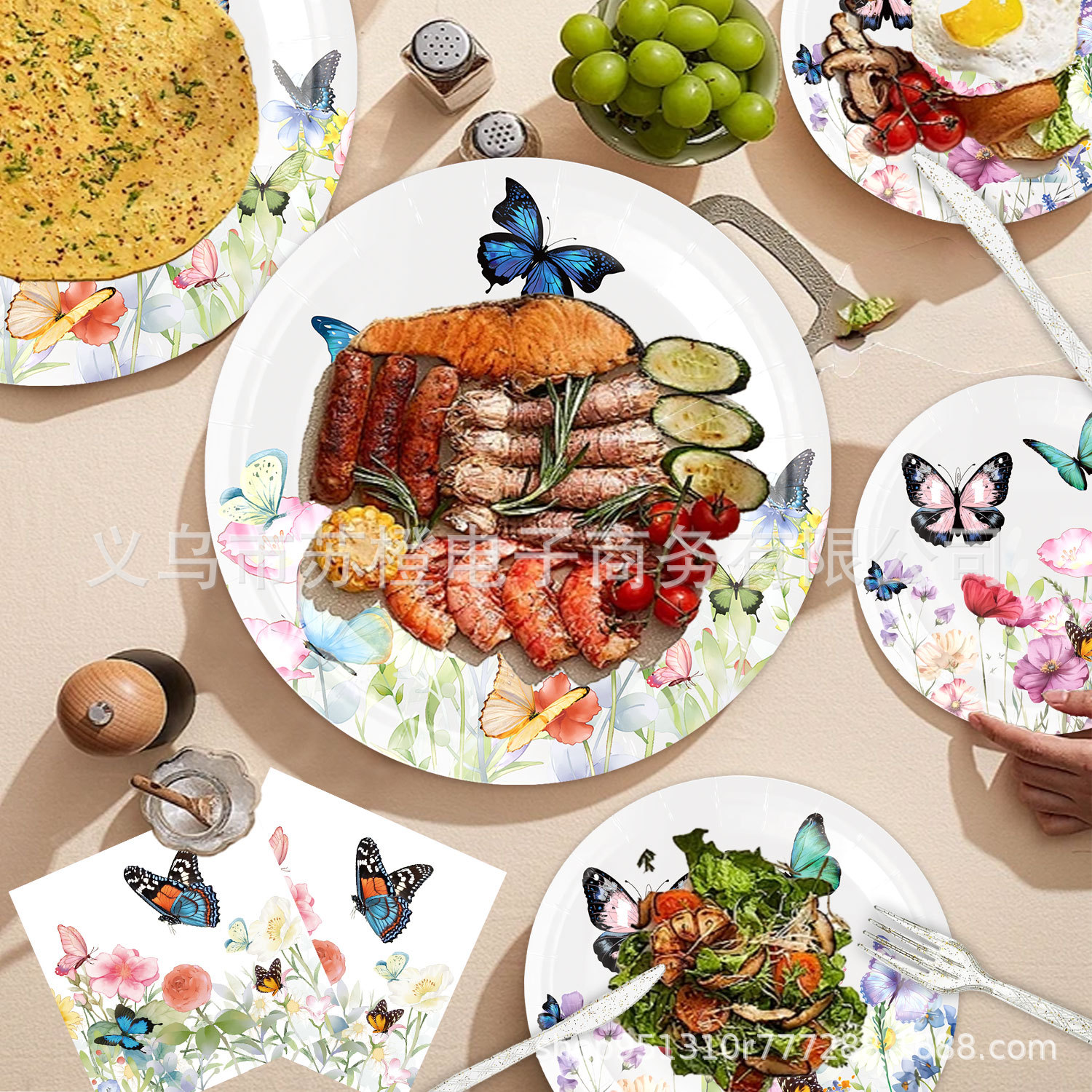 アマゾンの新型水墨蝶テーマパーティー食器女子茶話会紙皿テーブルクロスパーティー装飾セット