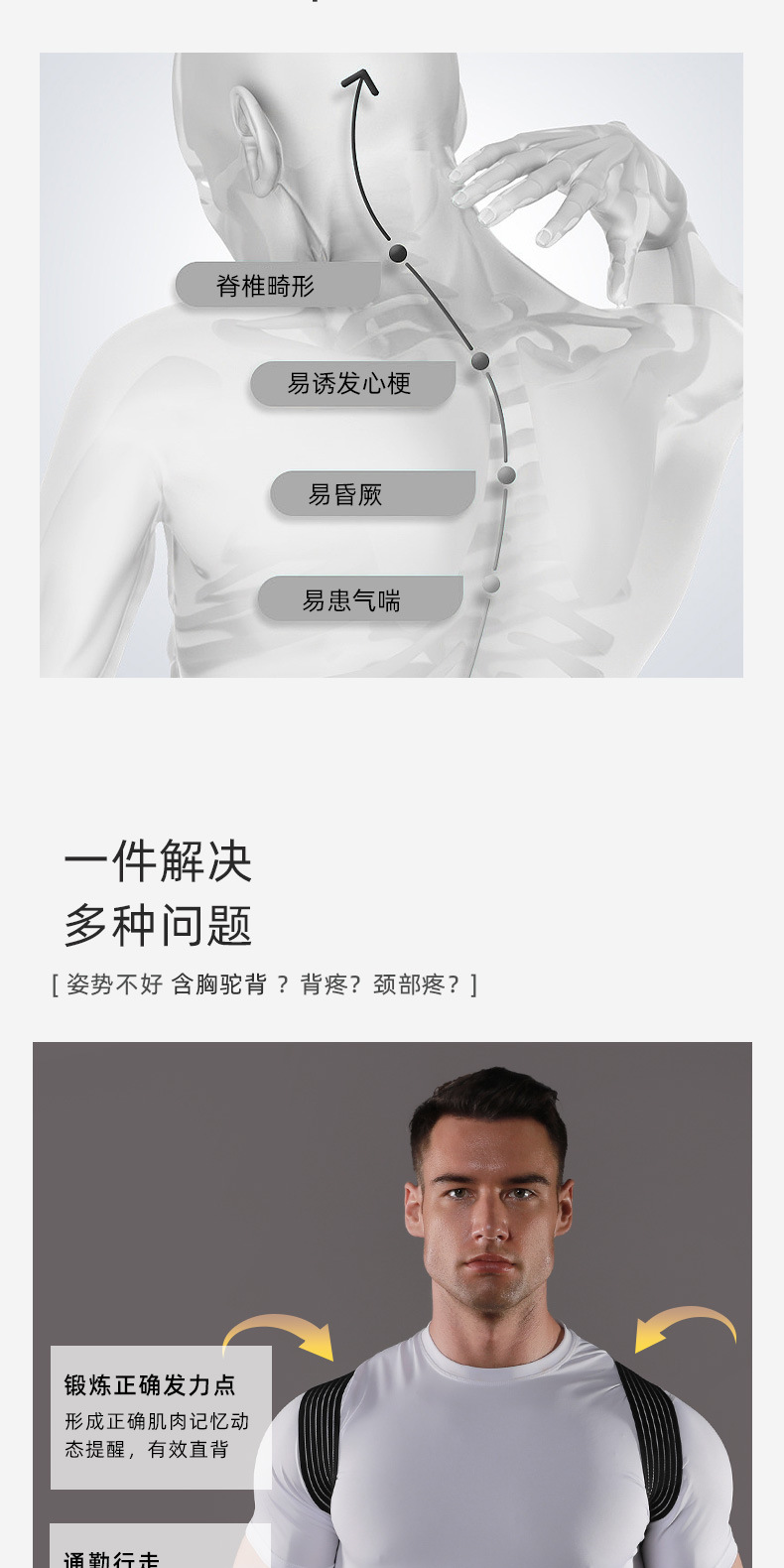 VBOSI健身沉肩带男女卧推肩部训练开肩辅助带挺胸直背矫正带工厂
