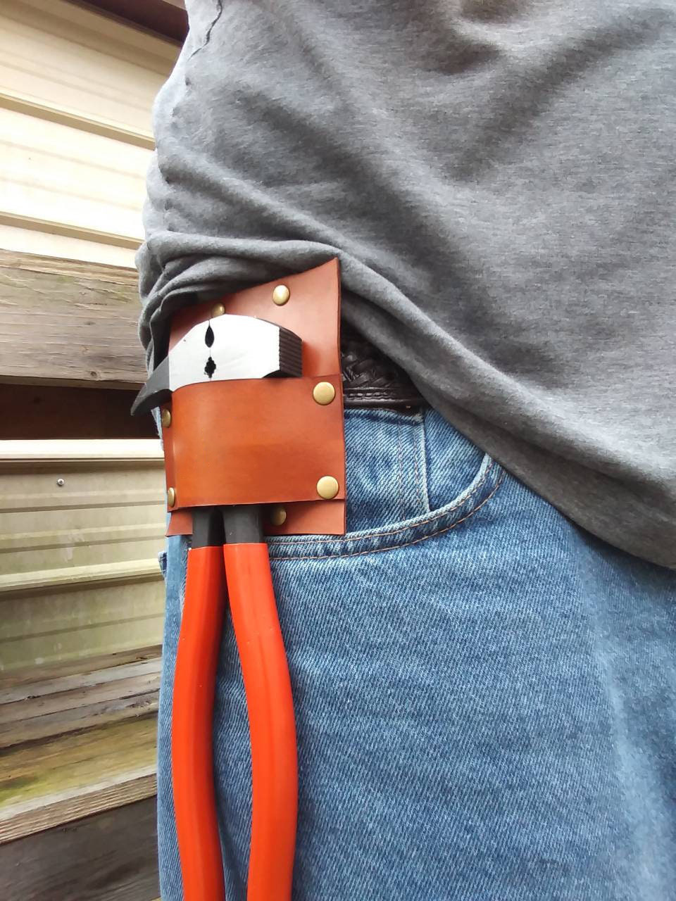 シンプルな革のメガネにバッグをかけて外出します。