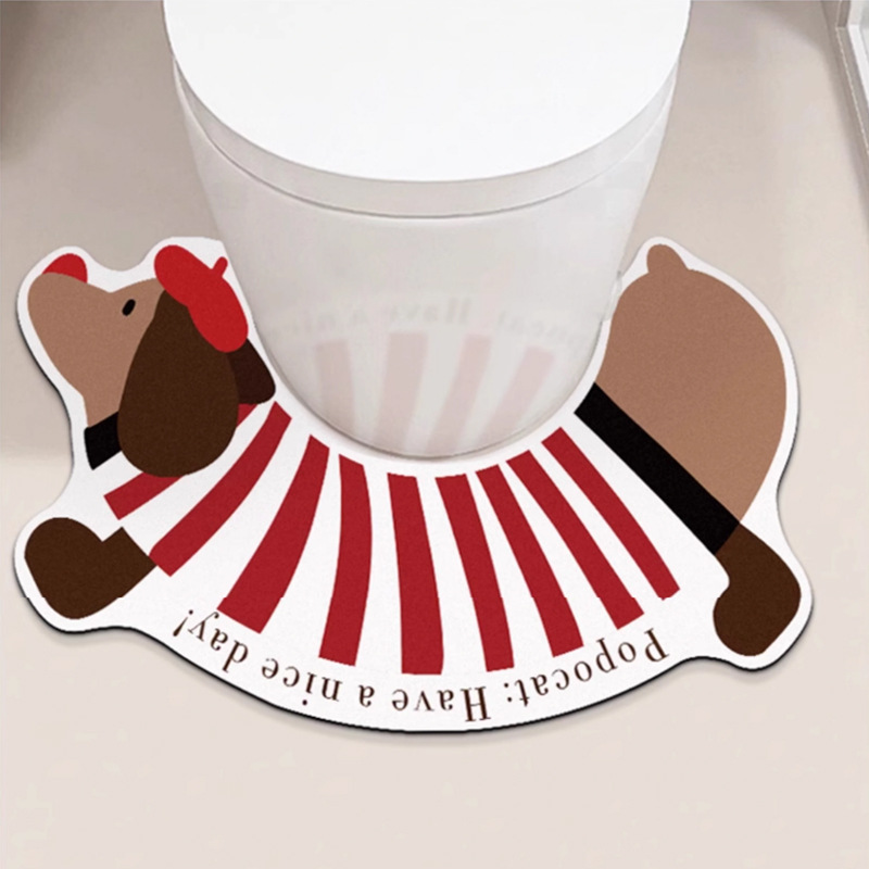 漫画風ダックスフントトイレU字型フロアマット、珪藻土吸水足元マット、浴室トイレ滑り止めマット、汚れに強い