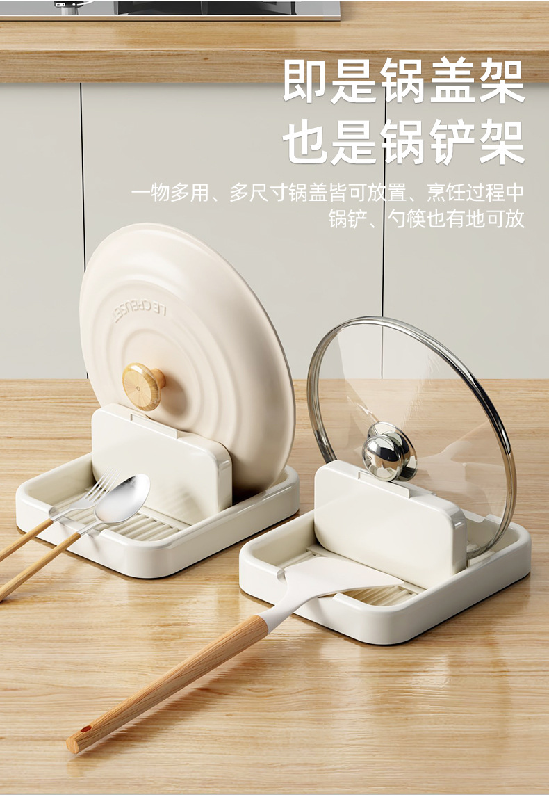 轻奢双层锅盖砧板架厨房台面奶白锅铲勺子沥水架案板置物架放置器