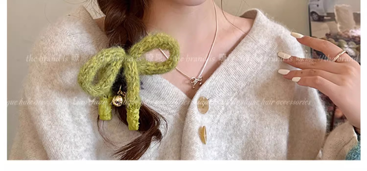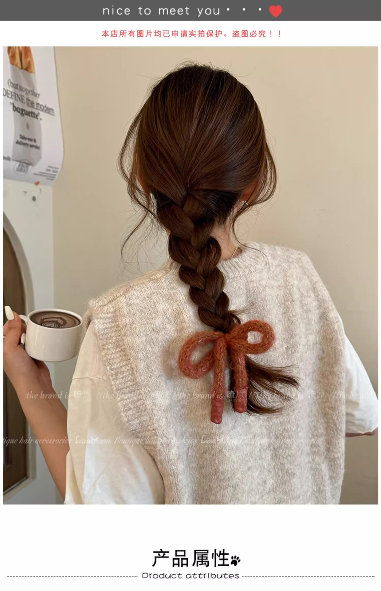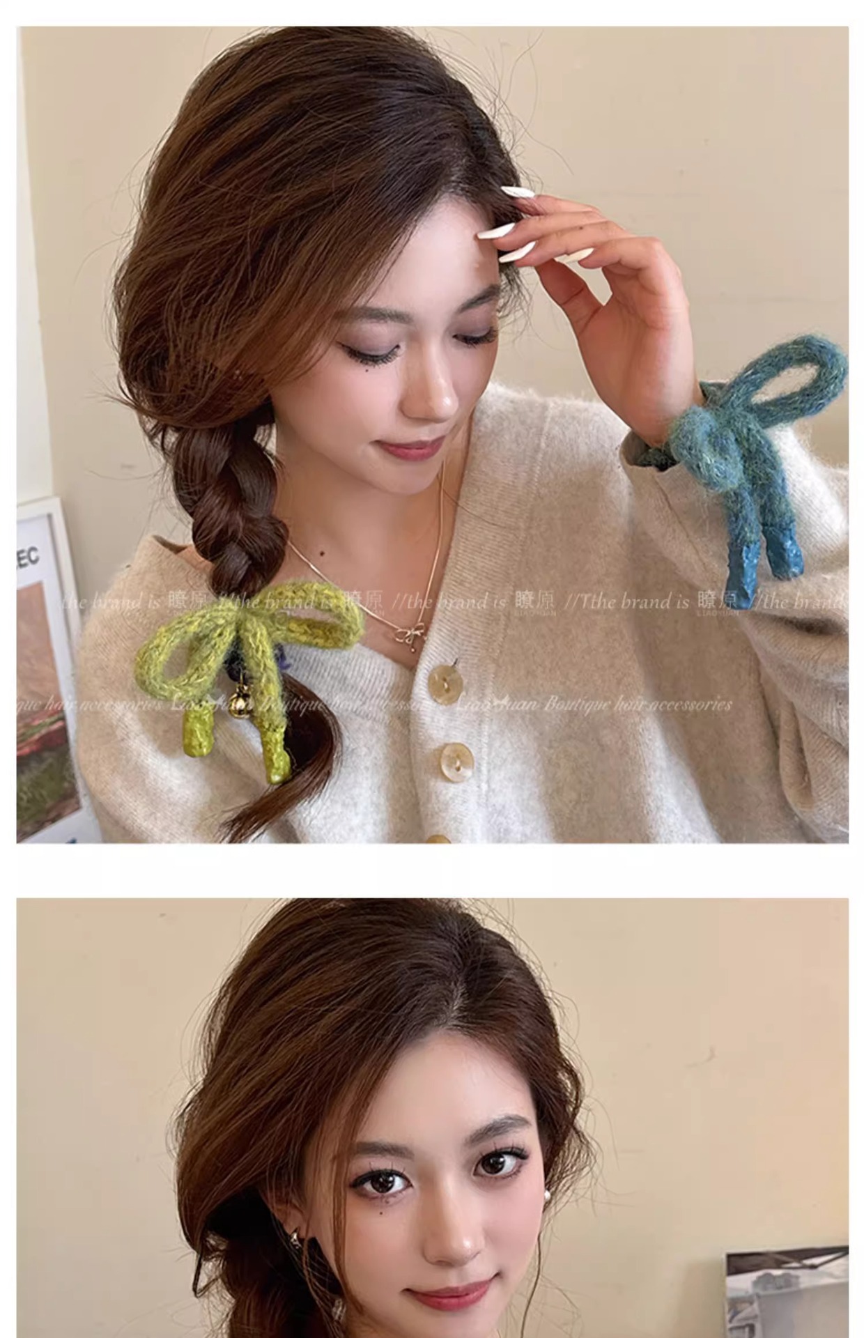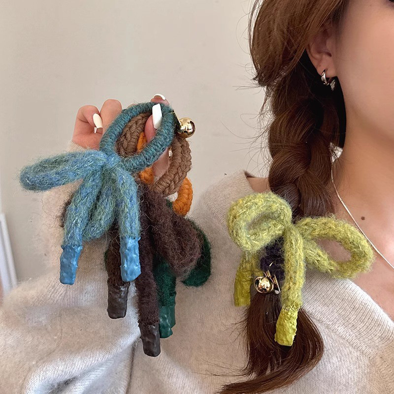 簡単なタイプの毛糸の蝶結びの髪は前髪を挟みます。