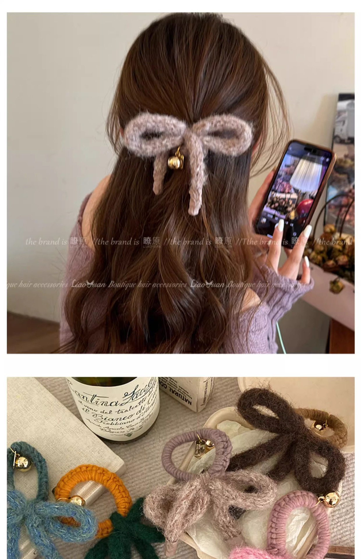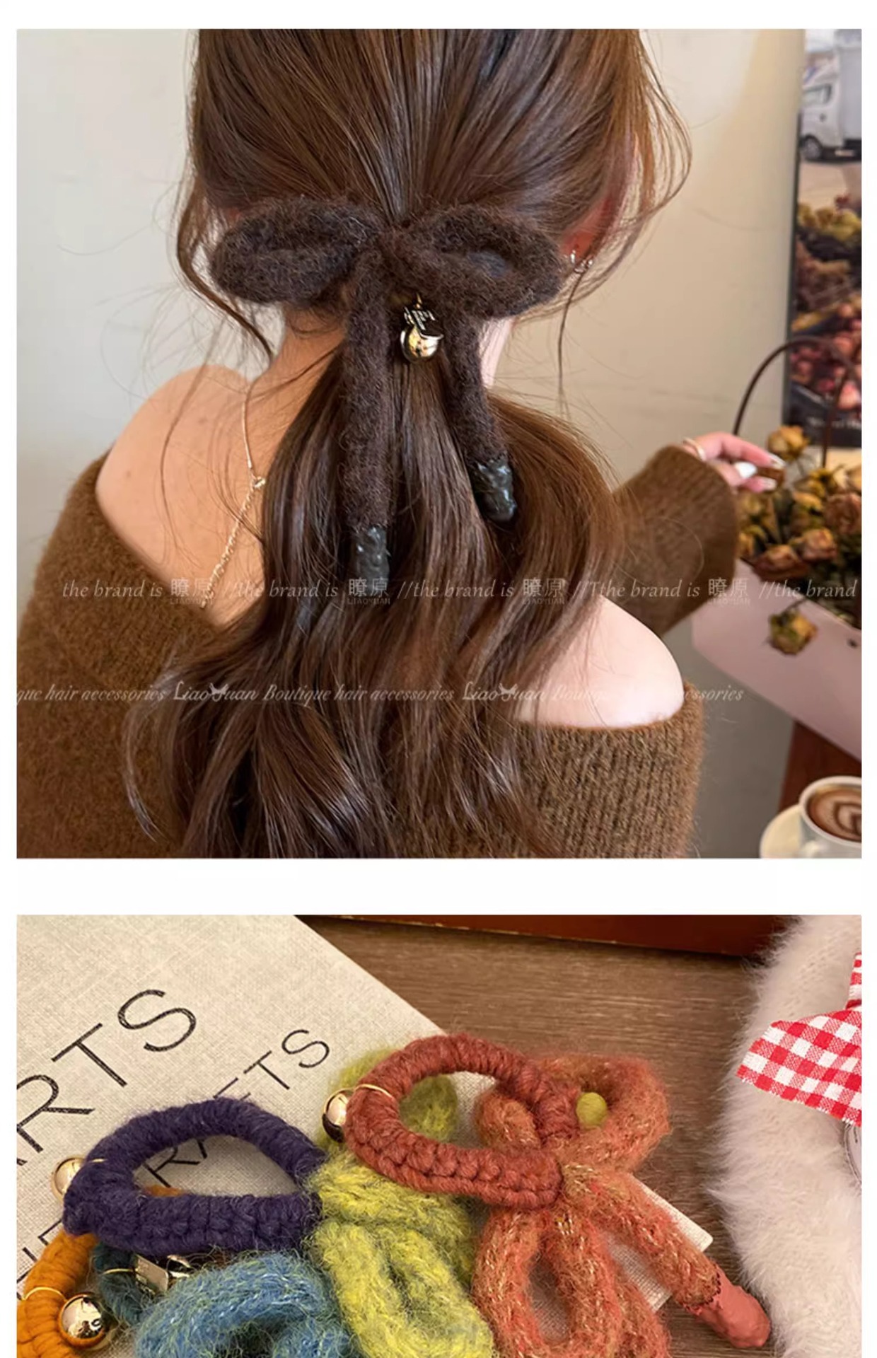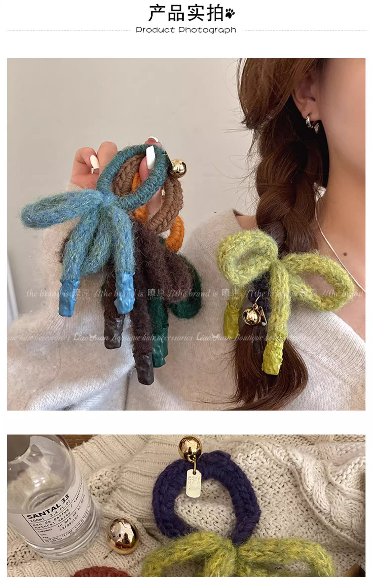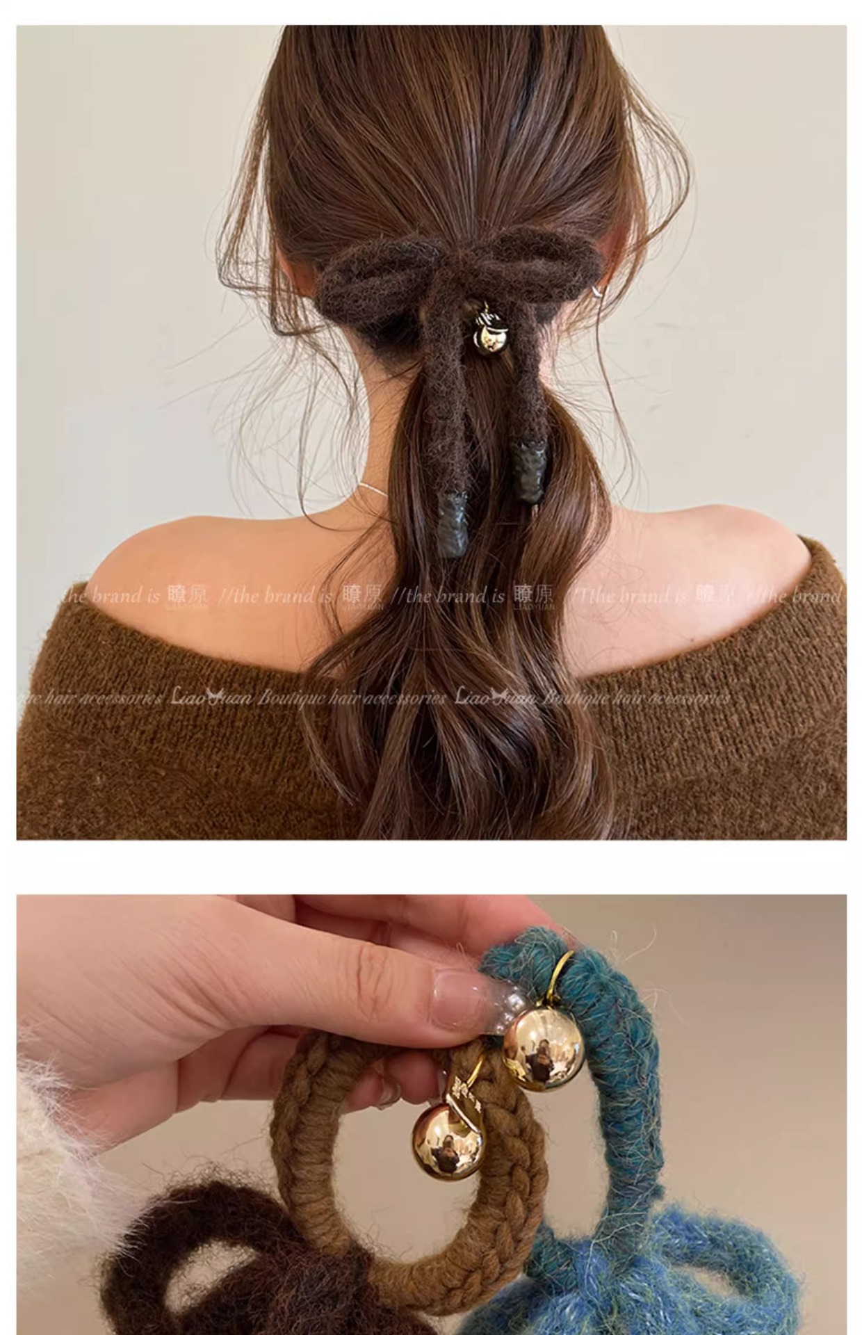 韓国の蝶結びの鈴の毛糸の髪輪の女性の毛がふわふわしていて、髪の紐を刺します。