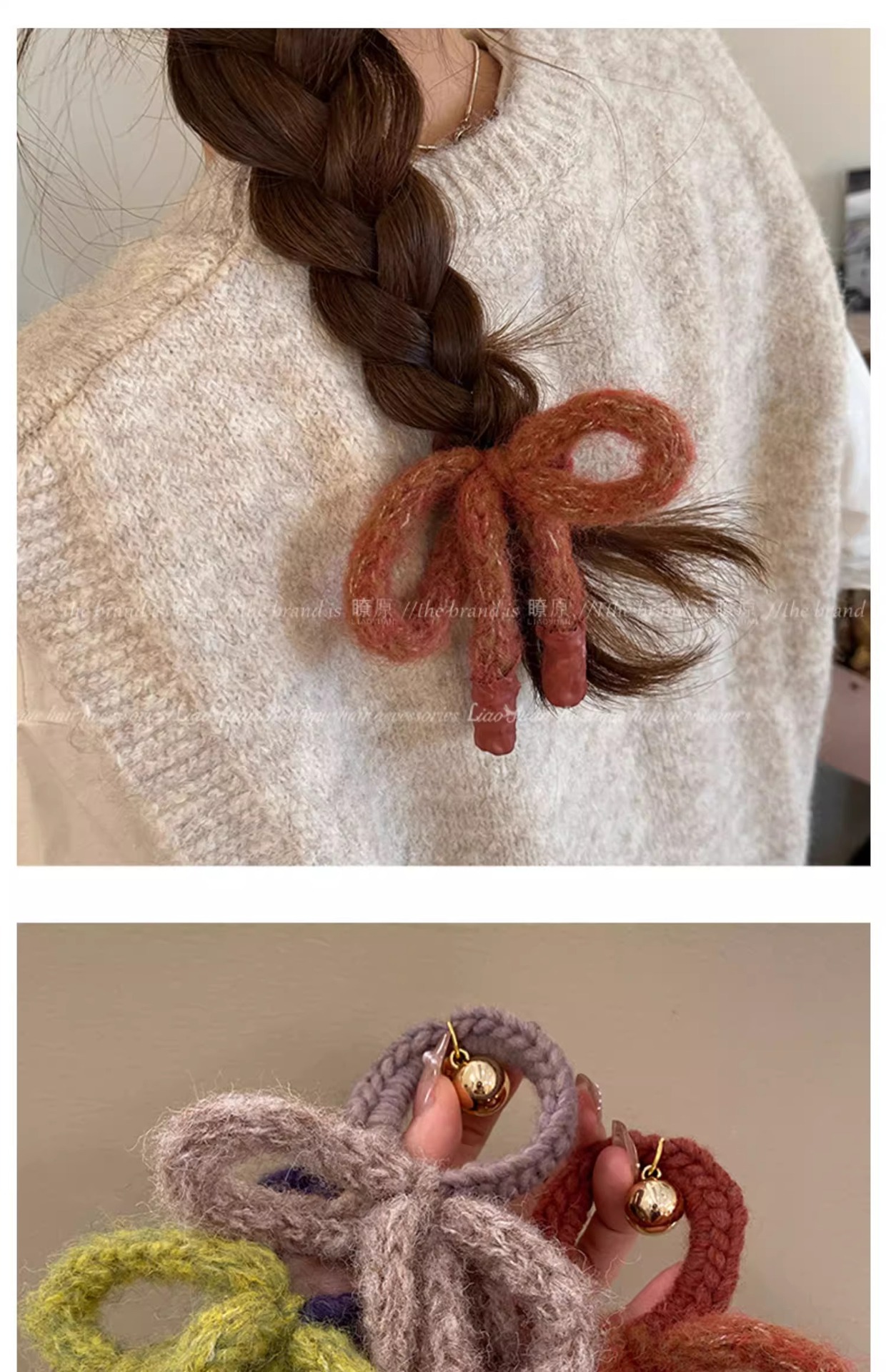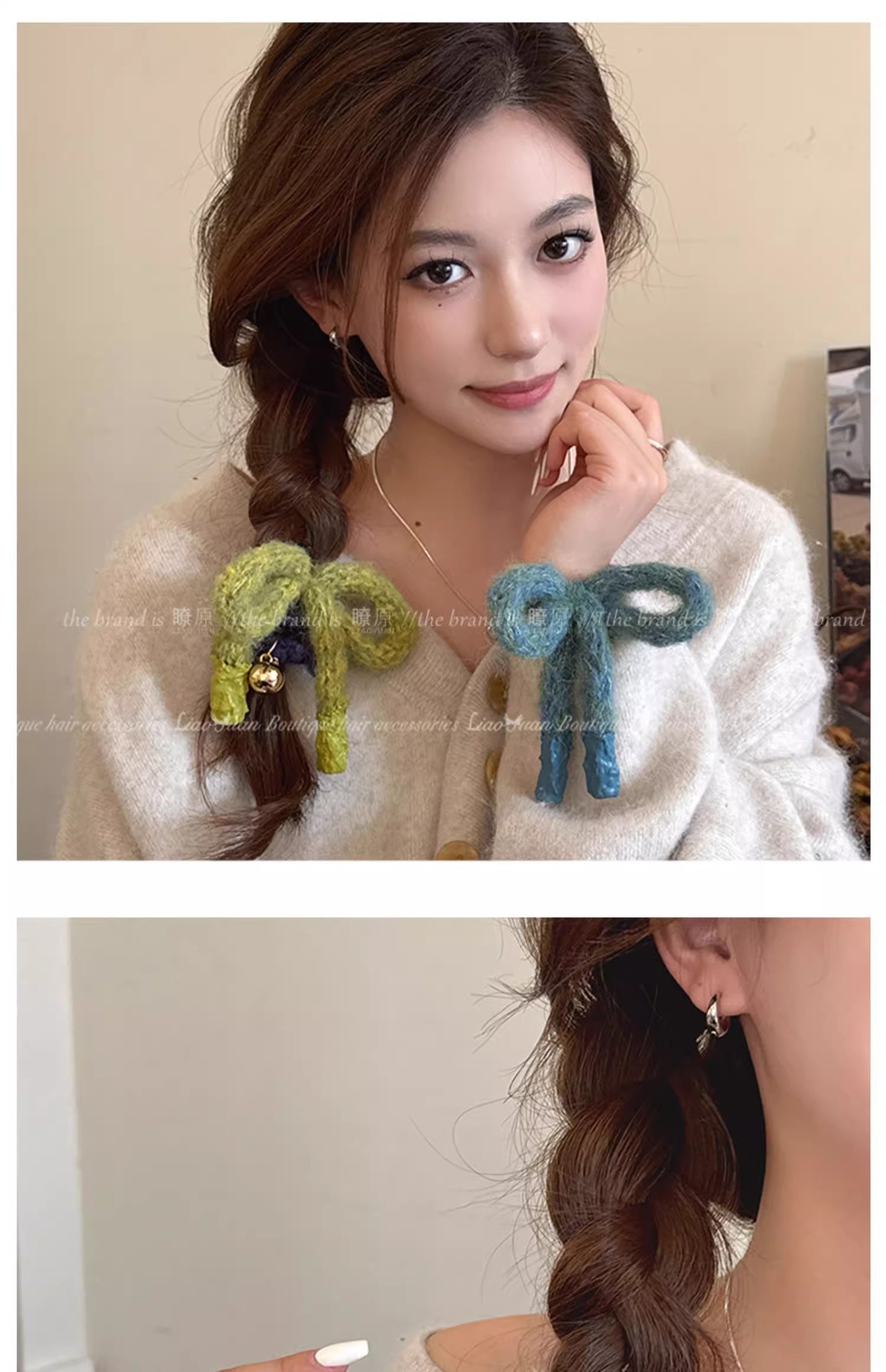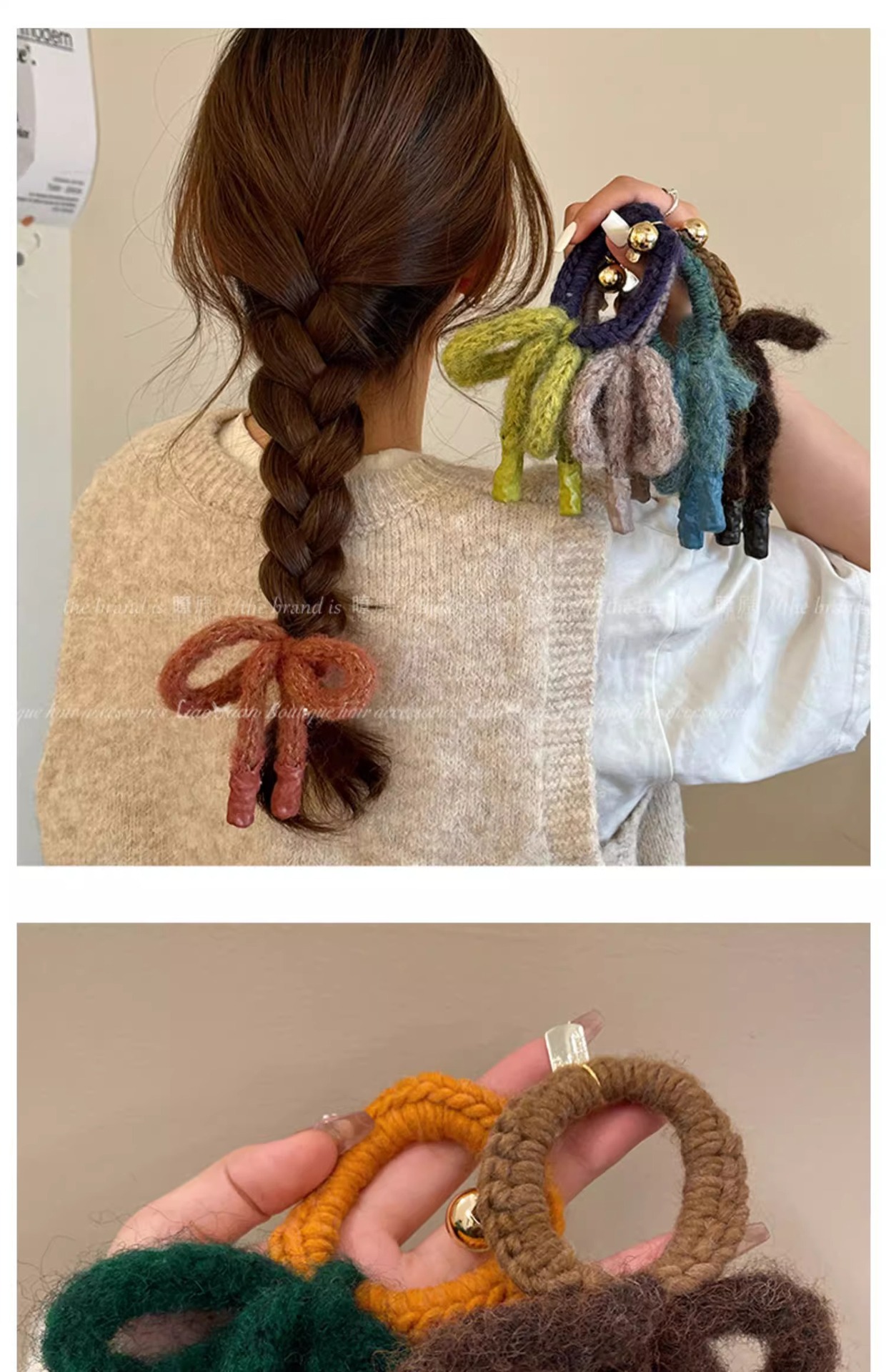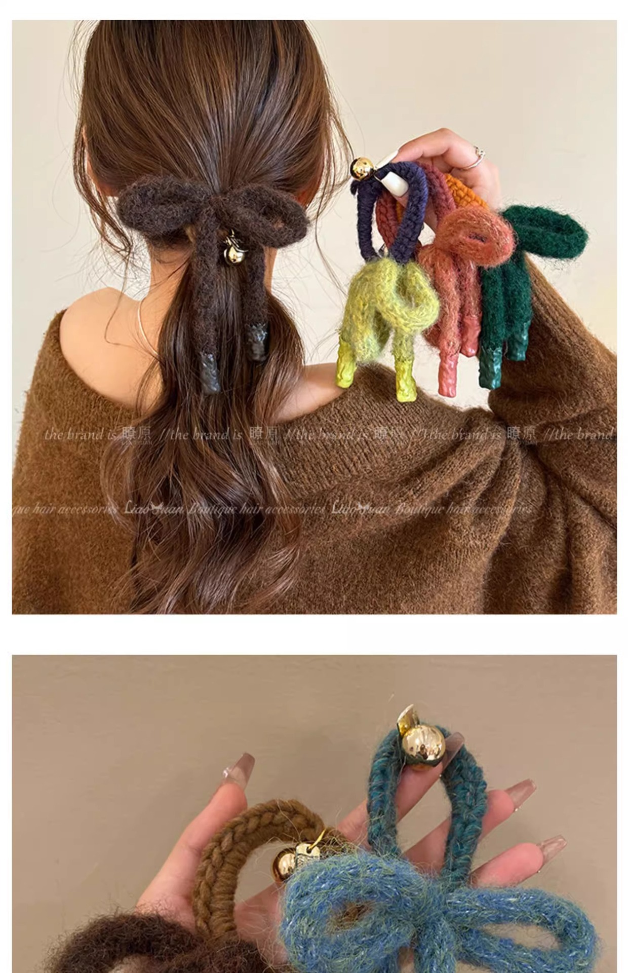韓国の蝶結びの鈴の毛糸の髪輪の女性の毛がふわふわしていて、髪の紐を刺します。