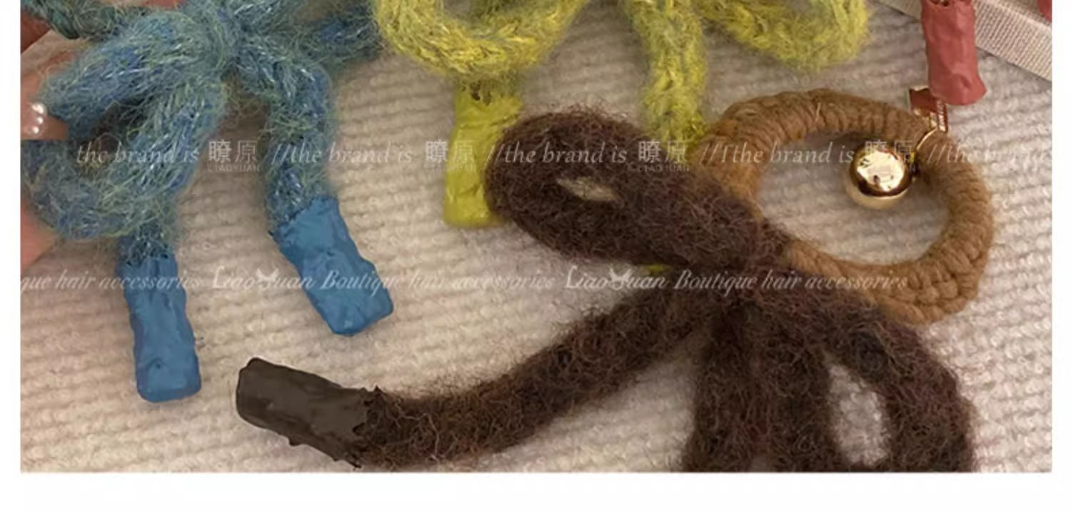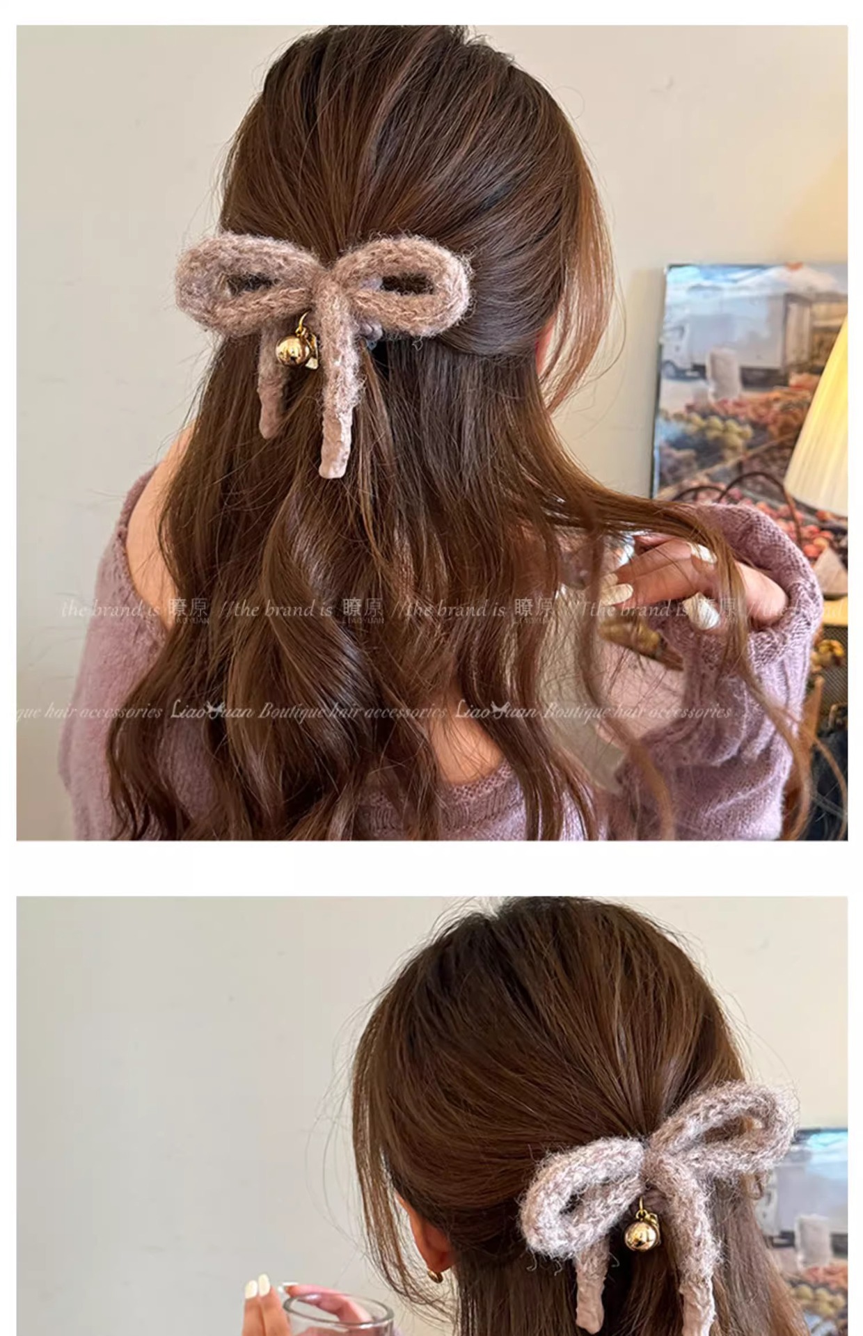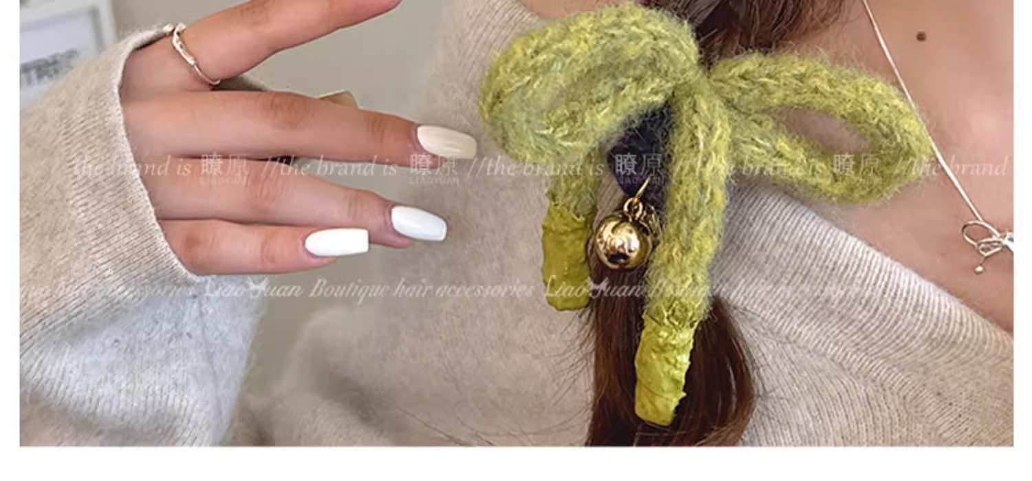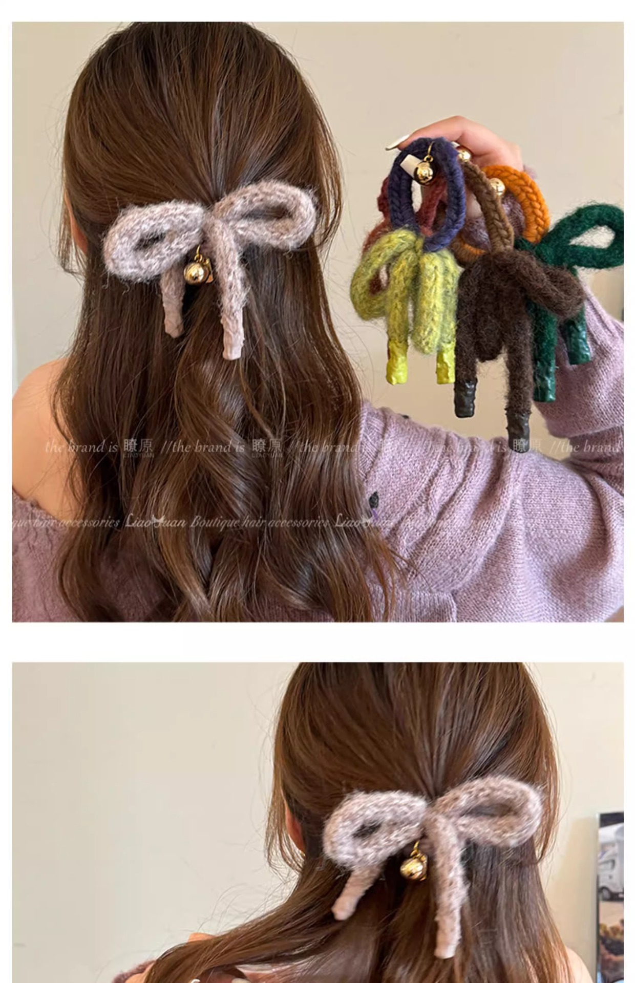 韓国の蝶結びの鈴の毛糸の髪輪の女性の毛がふわふわしていて、髪の紐を刺します。