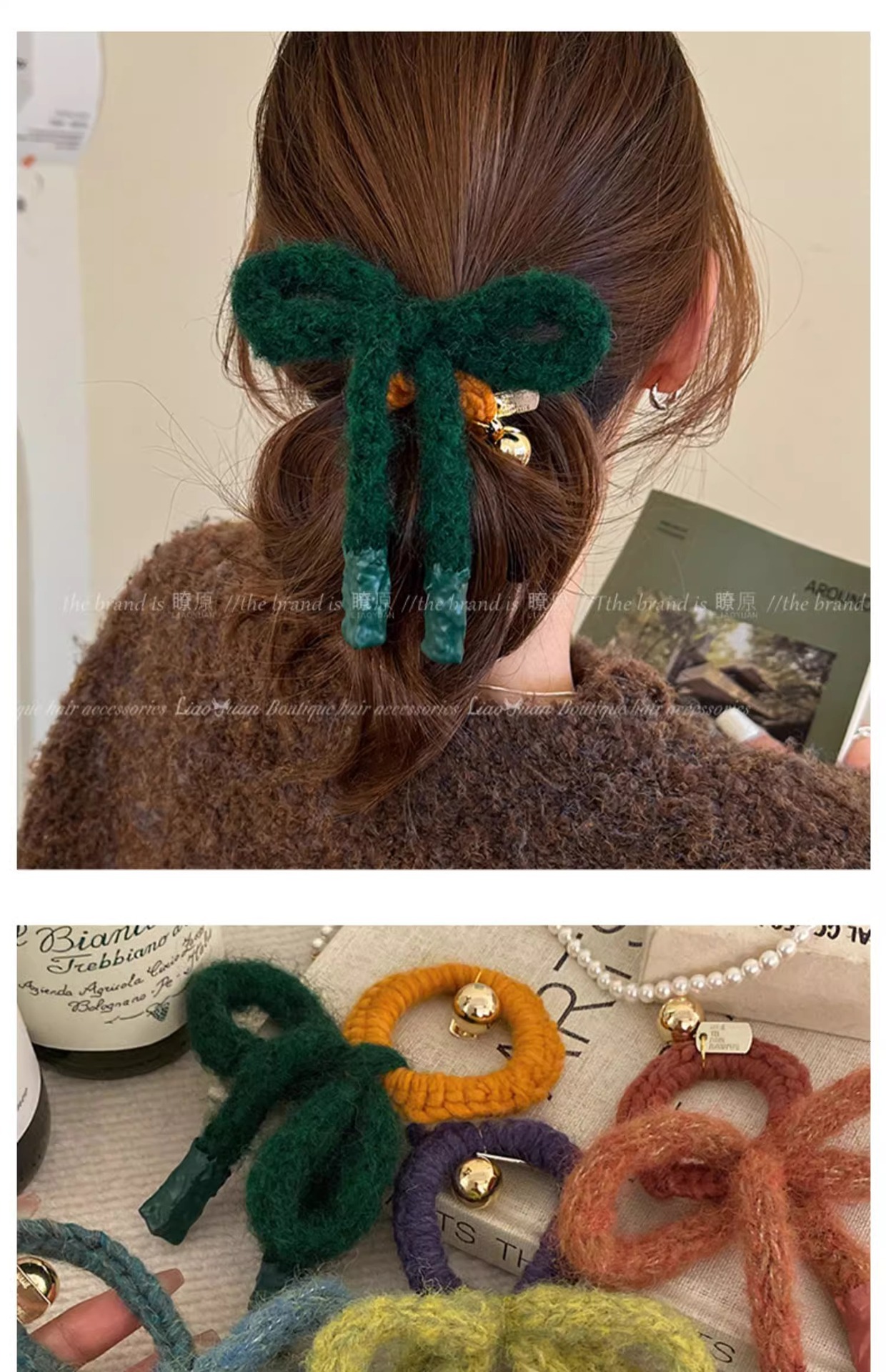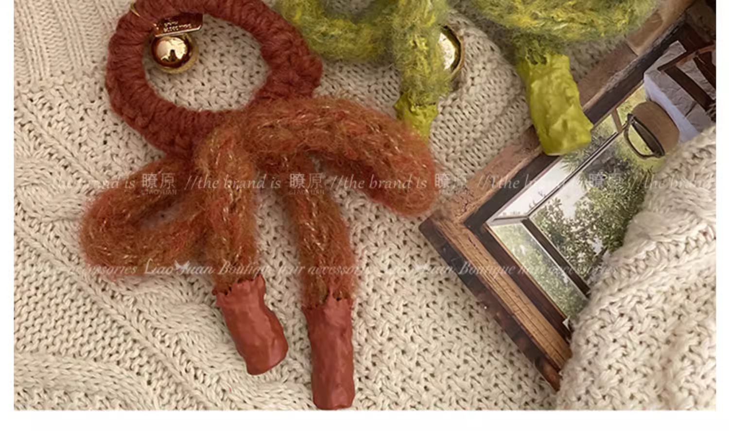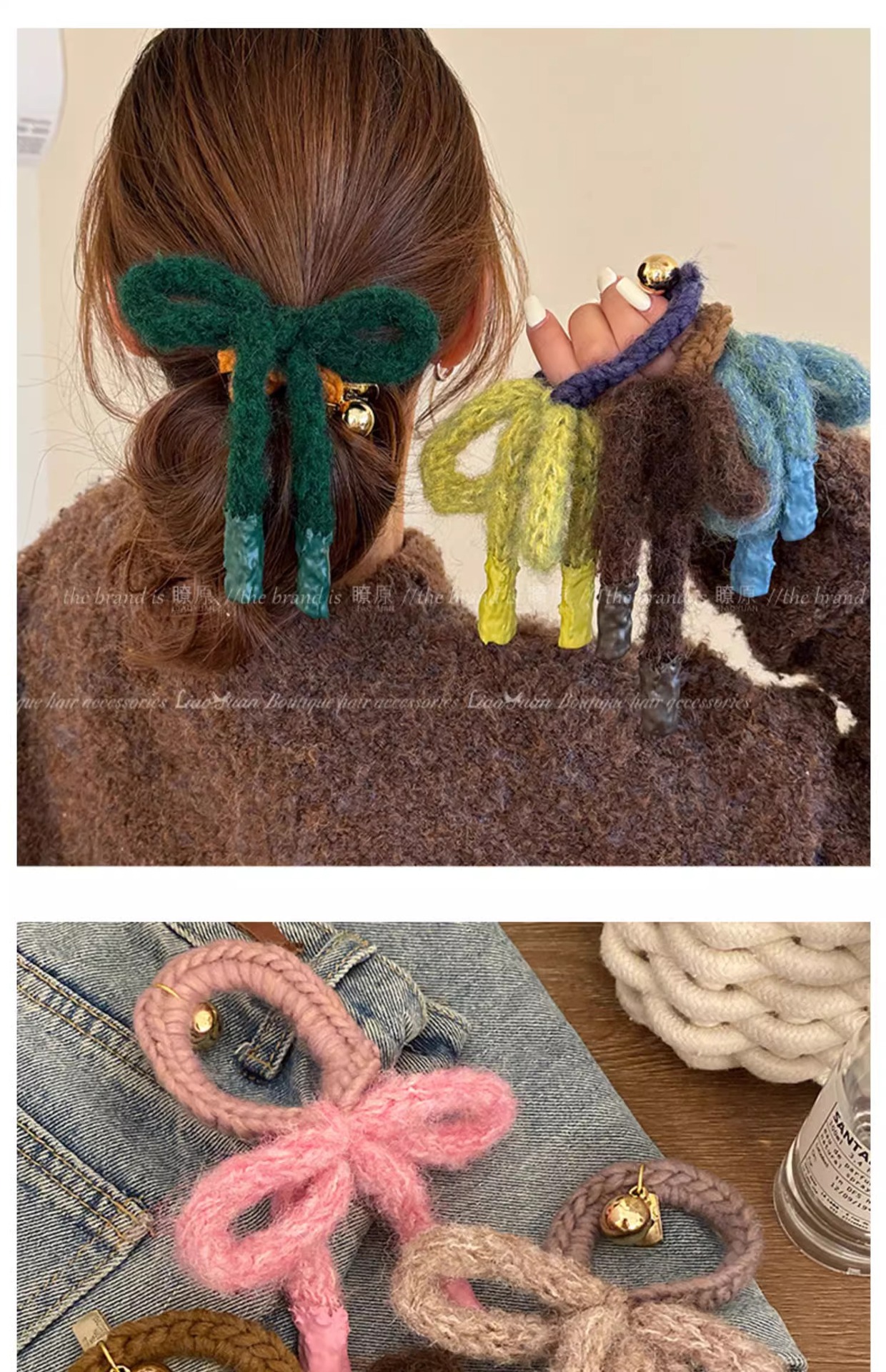 韓国のかわいい蝶結びの頭飾り秋冬の毛糸の髪輪は簡単です。