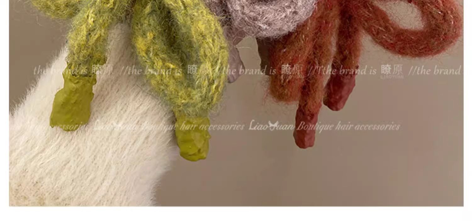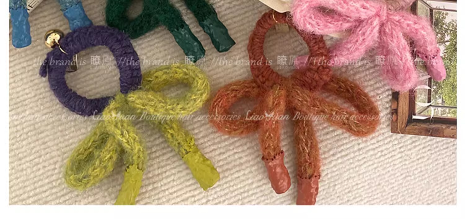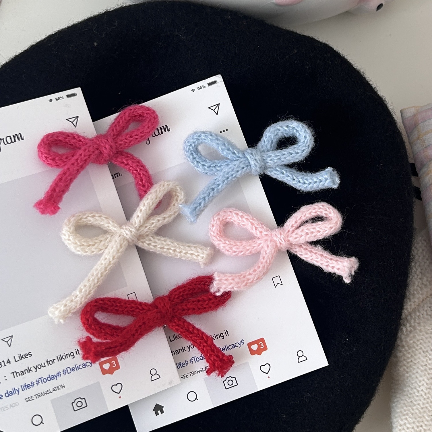 日本と韓国の手作りキャンディーカラーのモヘアカラフルなウールのヘアピン弓ニットカモノハシクリップ子供用ヘアアクセサリーヘアピン