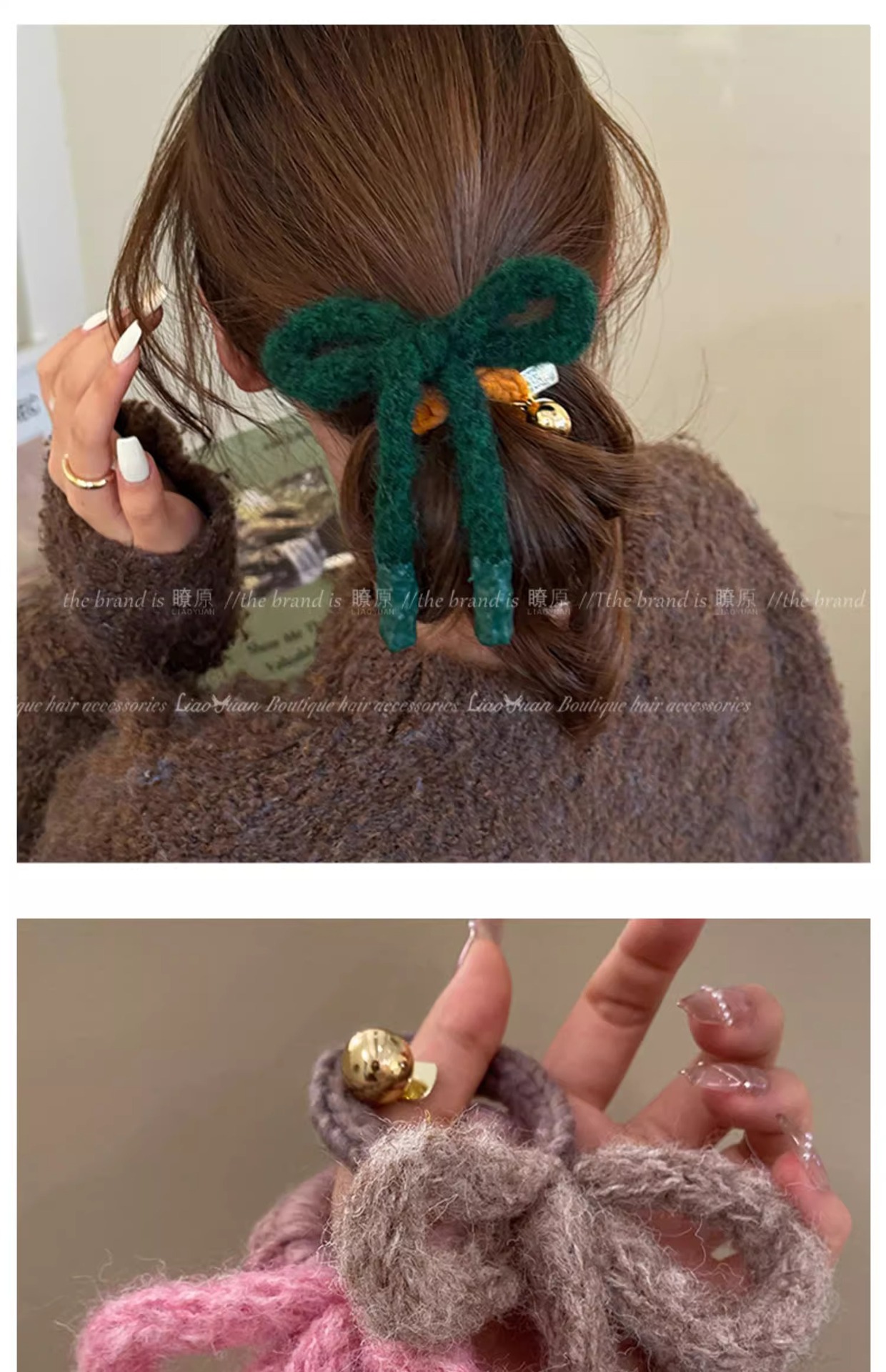 柔らかいモチモチのかわいい蝶結びの頭飾り秋冬の毛糸の髪輪のシンプルな髪ひもの女性2024の新型の百合の髪筋