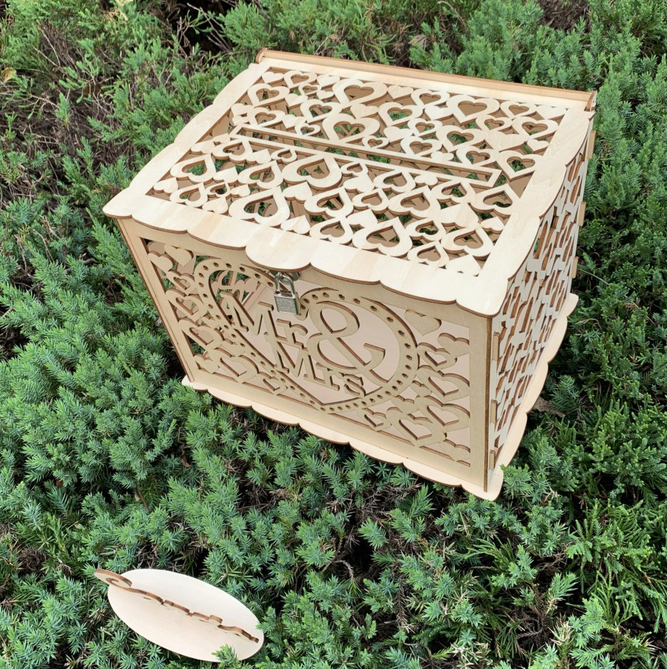 木製の結婚は透かし彫りの箱の名刺入れのカード箱の結婚式の装飾のグリーティングカードの木箱のウェディング用品に署名します。