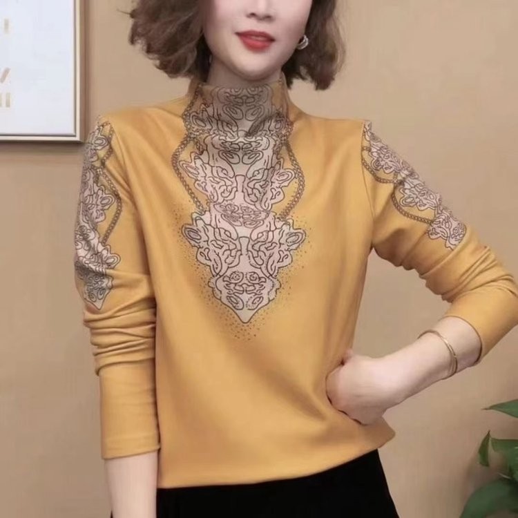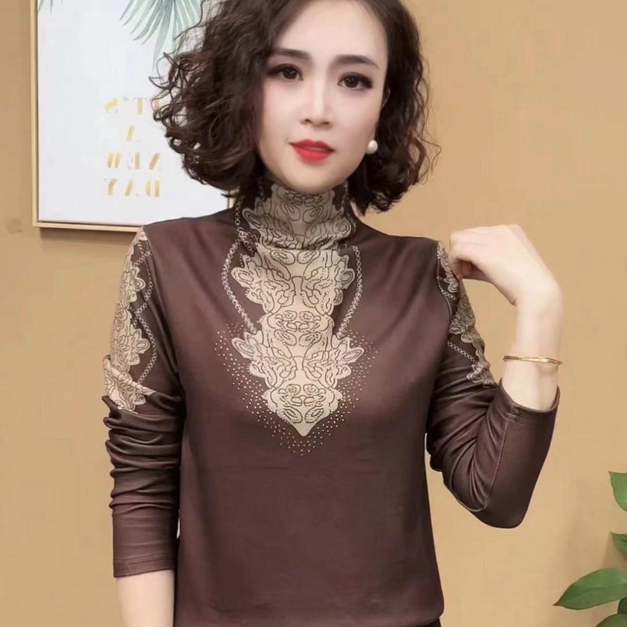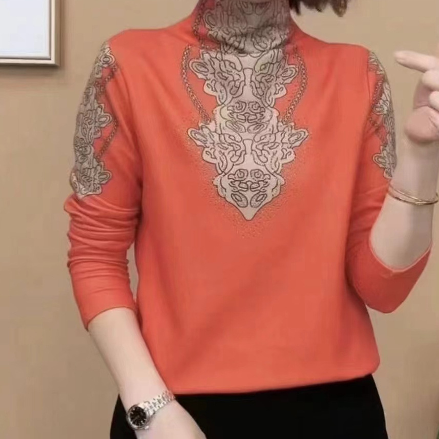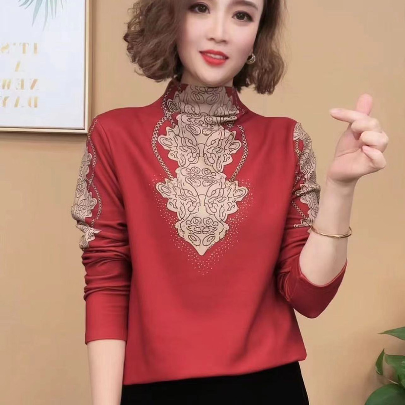生放送金2024秋冬ファッション半高襟気質百合長袖減齢シャツtシャツママ服