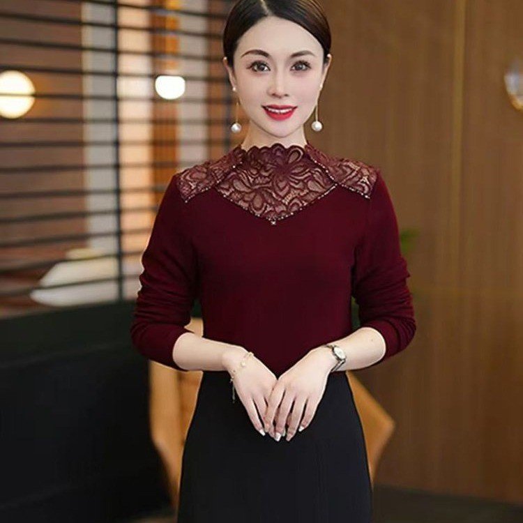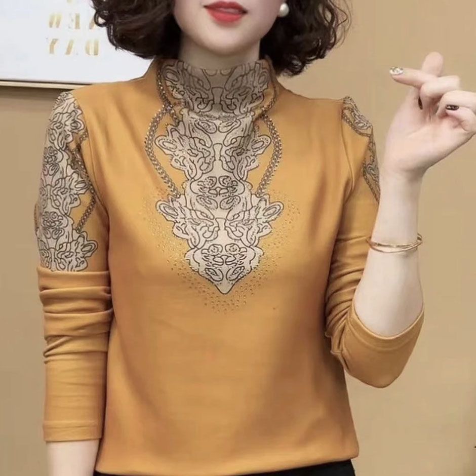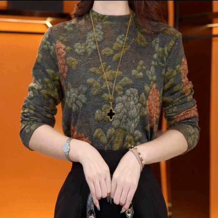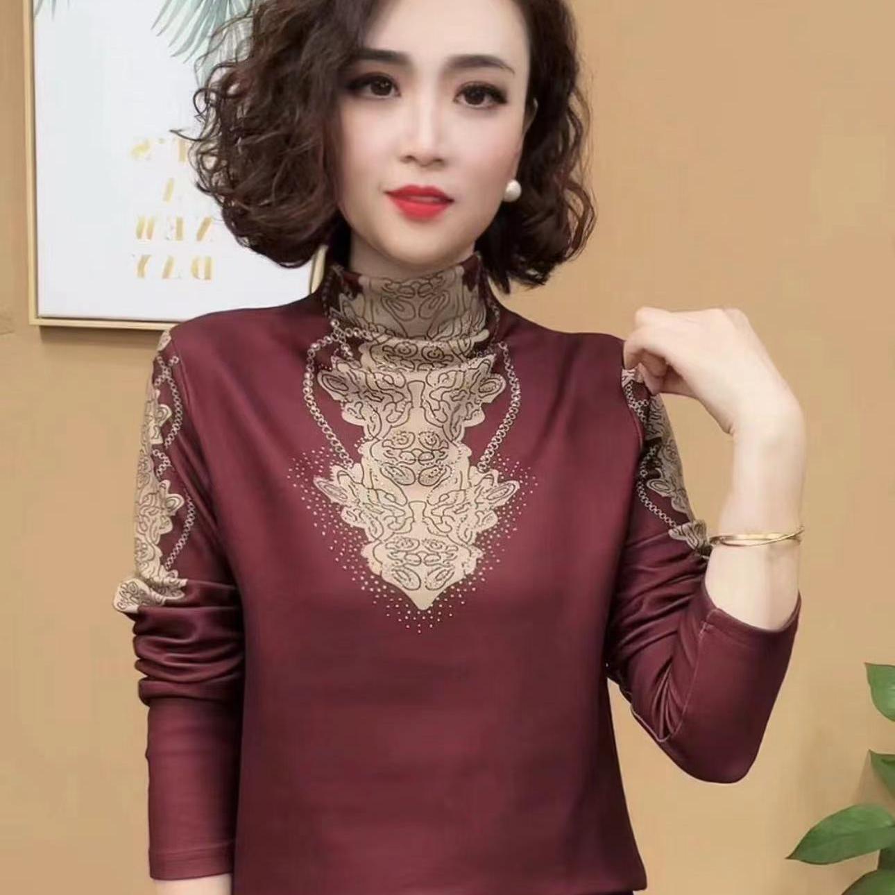 生放送金2024秋冬ファッション半高襟気質百合長袖減齢シャツtシャツママ服