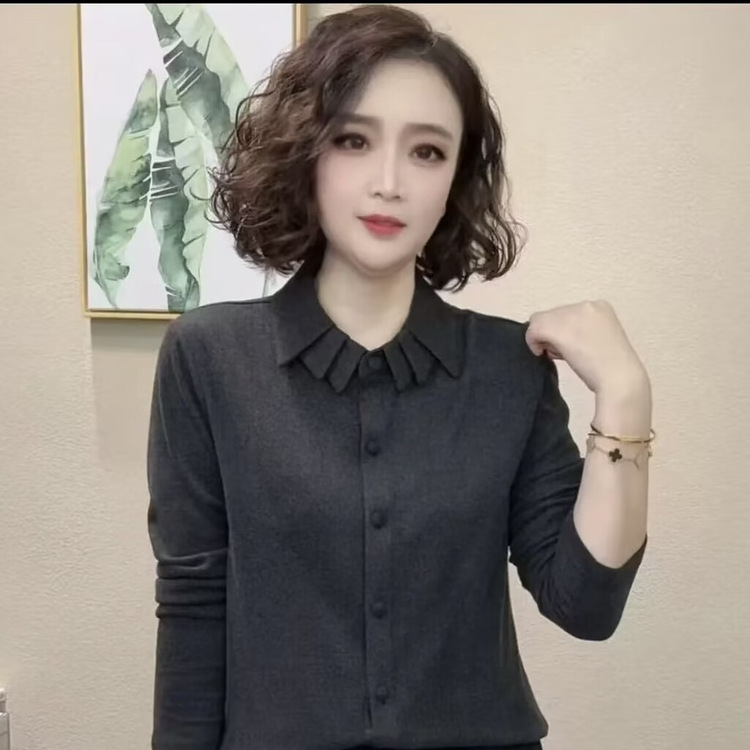 ディザトーンの爆発金2024秋冬の新しいファッションのレースの襟の暗い紋様のジャカードの洋風の立襟の長袖の中で底のシャツを掛けます。