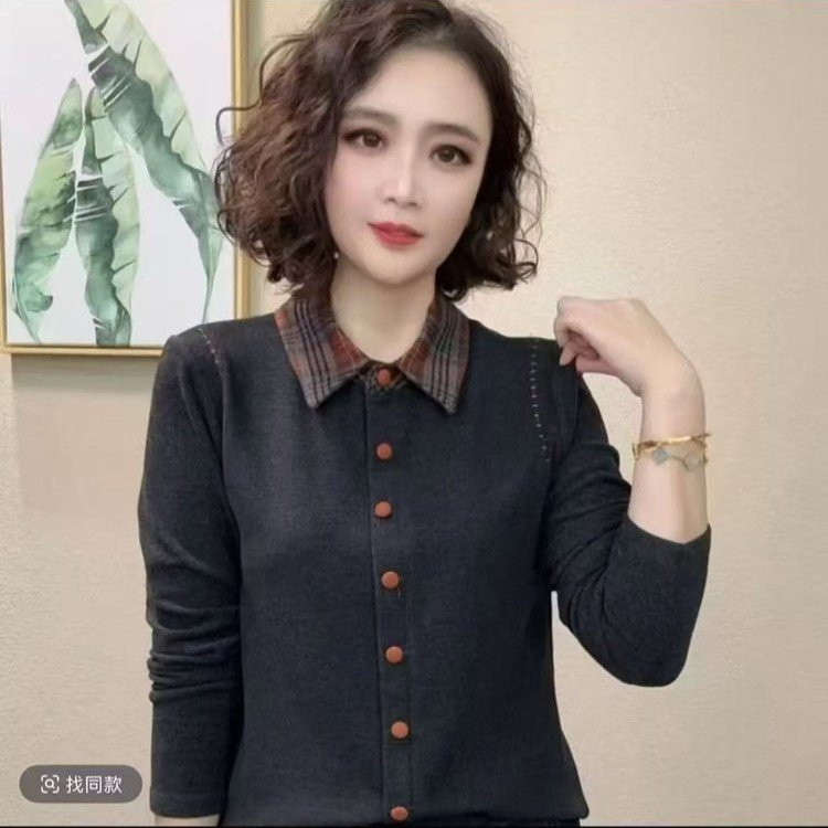 原版面料一件代发直播爆款2025冬季款时尚翻领洋气百搭减龄打底衫