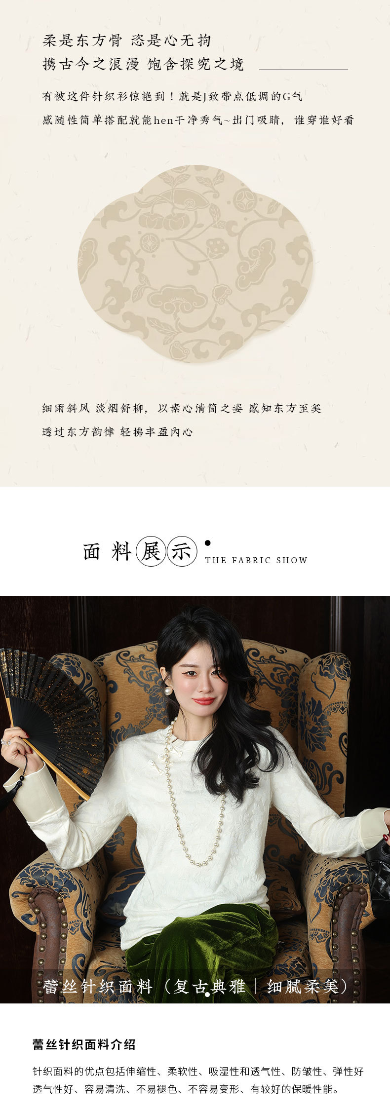 新中式無地万能高伸縮ニットトップス、レース立体浮き彫り花柄トップス、アーティスティックレトロスタイル