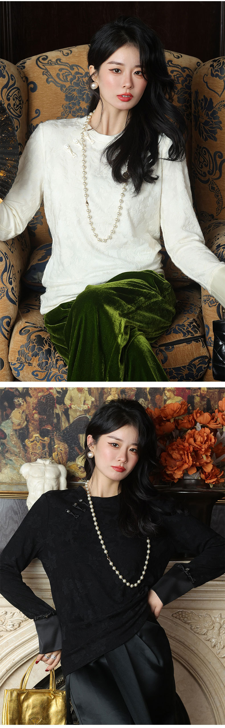 秋の新作トップス、中国風改良斜襟デザイン、シルク冠楽绉ジャカードシャツ、桑蚕糸婦人服