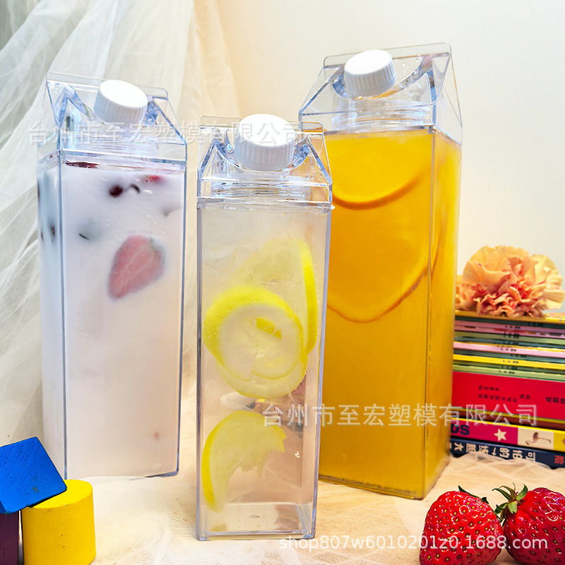 新型透明シンプル牛乳カップ透明psプラスチック角型コップ創意アニメ牛乳瓶印刷LOGO