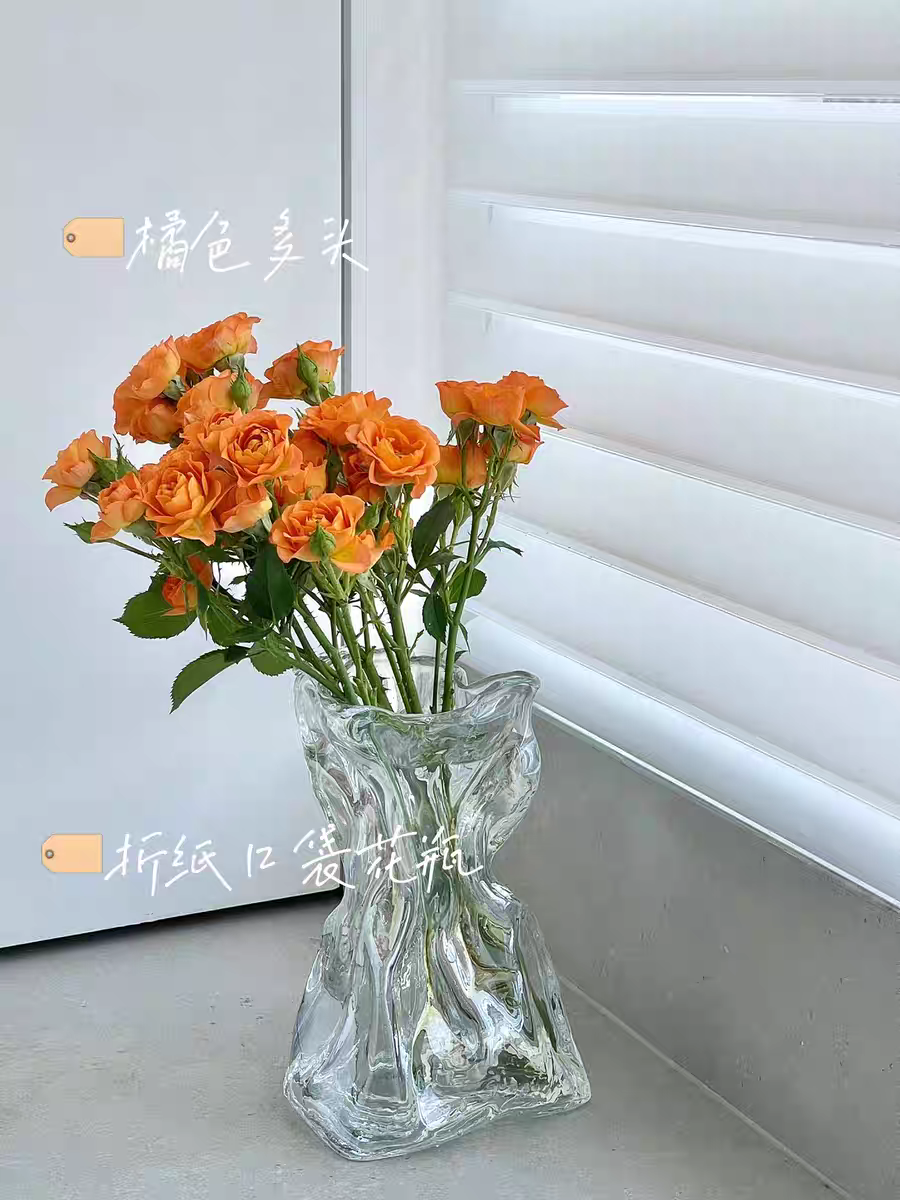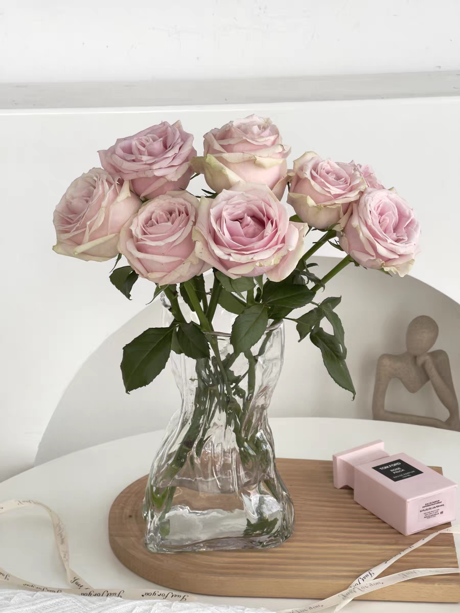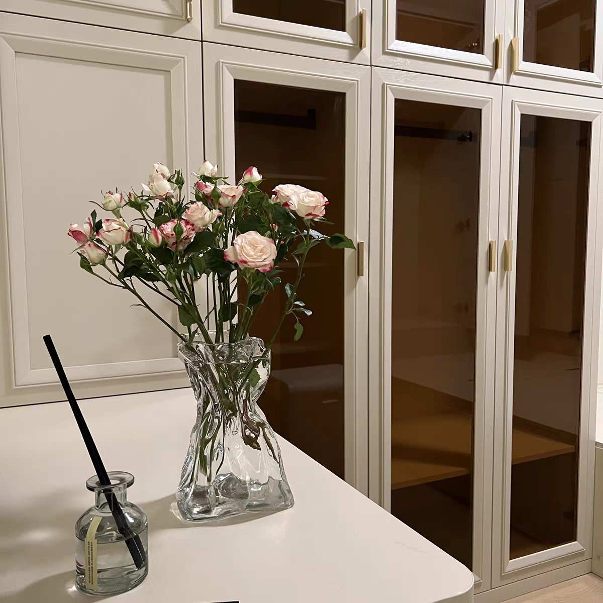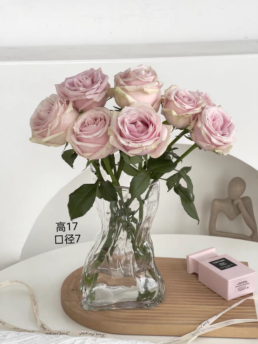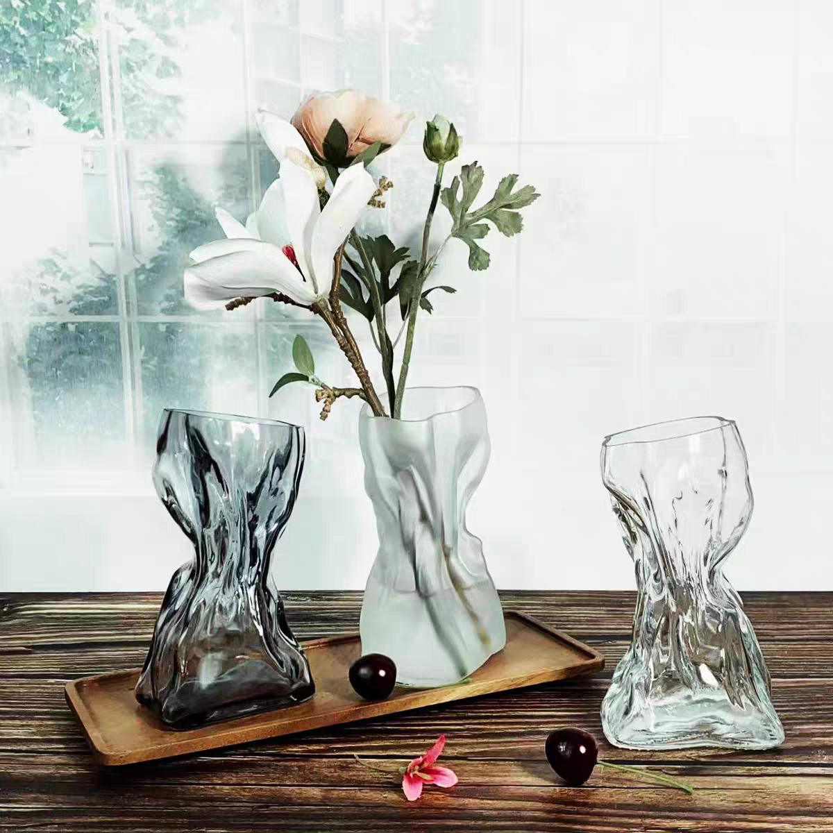 高級感シンプルな創意の不規則な民宿花瓶透明ガラス客間デスクトップ生け花水養装飾置物