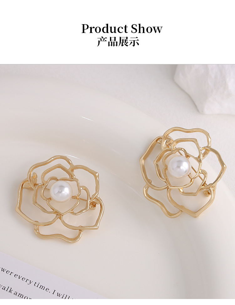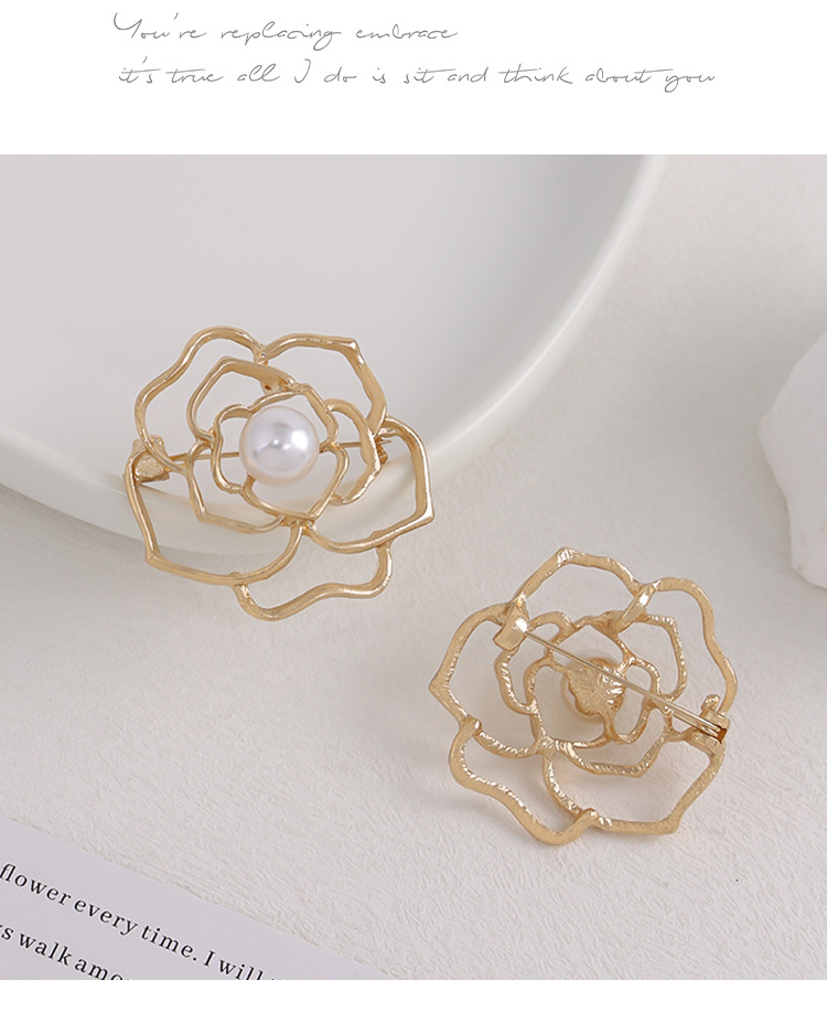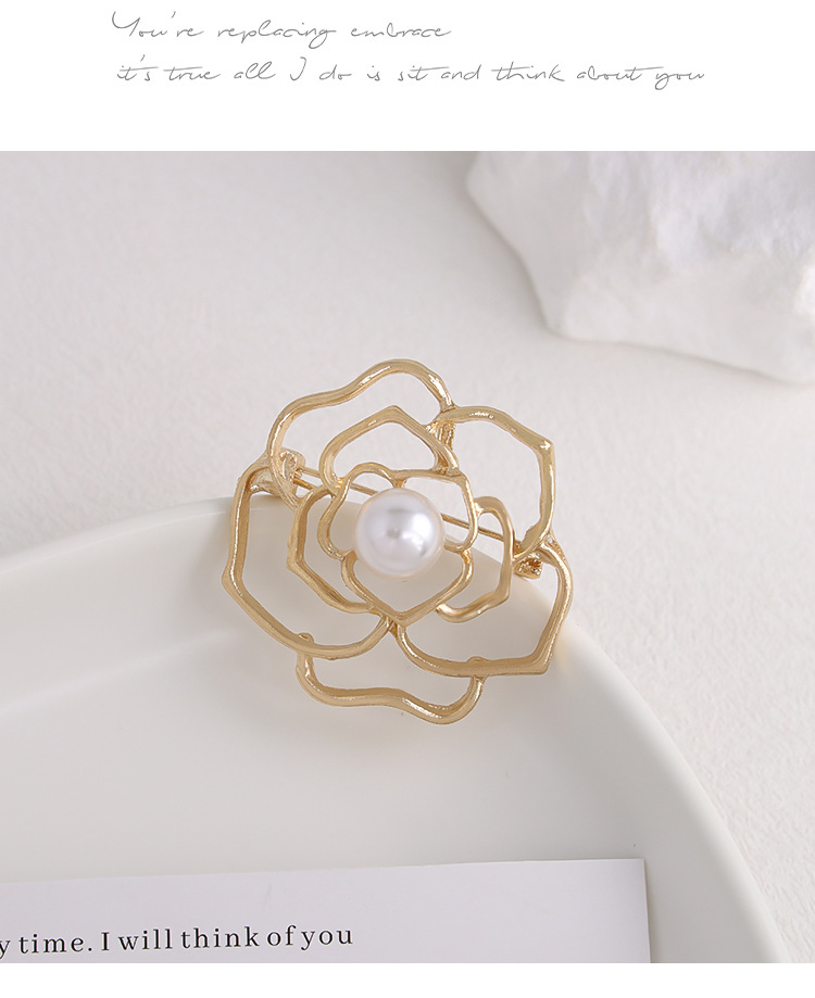 ハスキーな金色の真珠の胸の花のツバキのブローチの女性の高級な百合の高級感のピンは光の個性の装飾を防ぎます。
