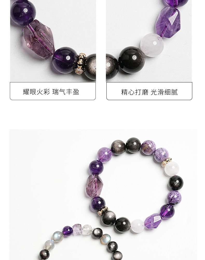 天然超七水晶カップルのブレスレット超七三輪中堅紫発晶水晶メーカー卸売り