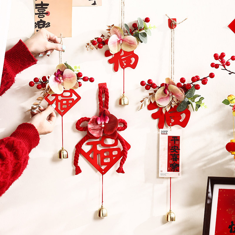 新年に赤い果物の門のペンダントを飾ります。