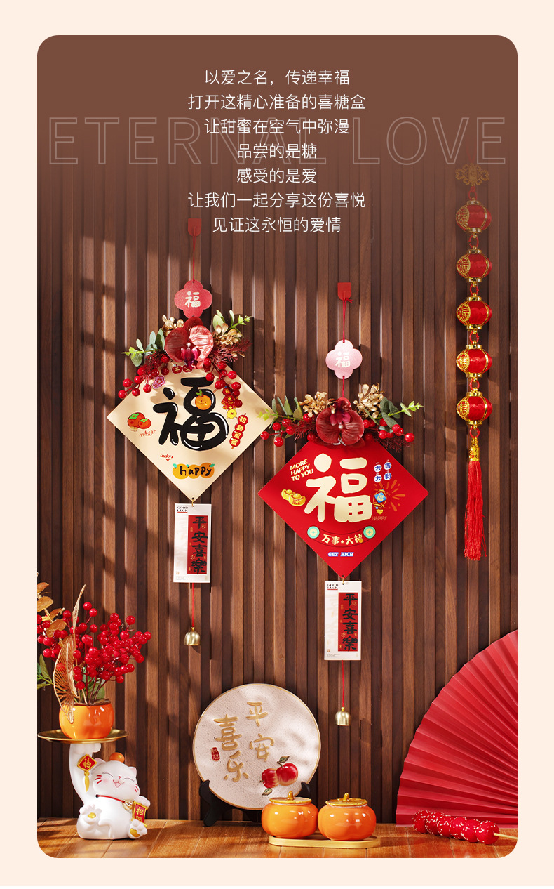 新年装饰红果门挂件2025蛇年春节客厅入户门福字挂饰过年气氛布置