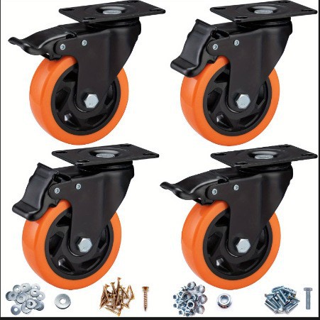 中型オレンジ色の通花キャスター、箱入りキャスター、越境電子商取引専用