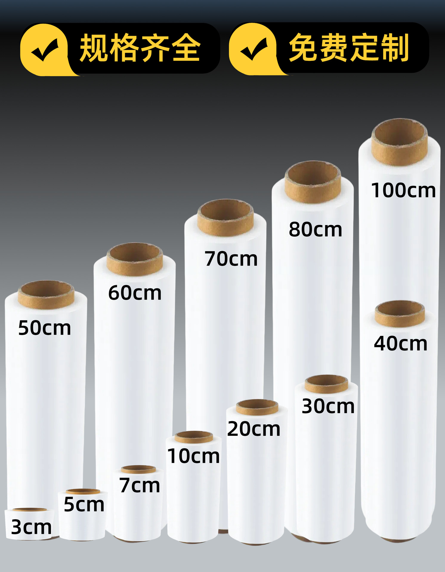 Pe黒ラッピングフィルム黒フィルム50cm幅ストレッチフィルム物流工业用遮光包装保护フィルム