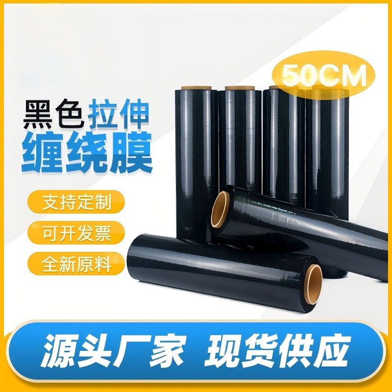 pe黑色缠绕膜拉伸膜宽50cm工业保鲜膜包装膜托盘打包塑料薄膜批发