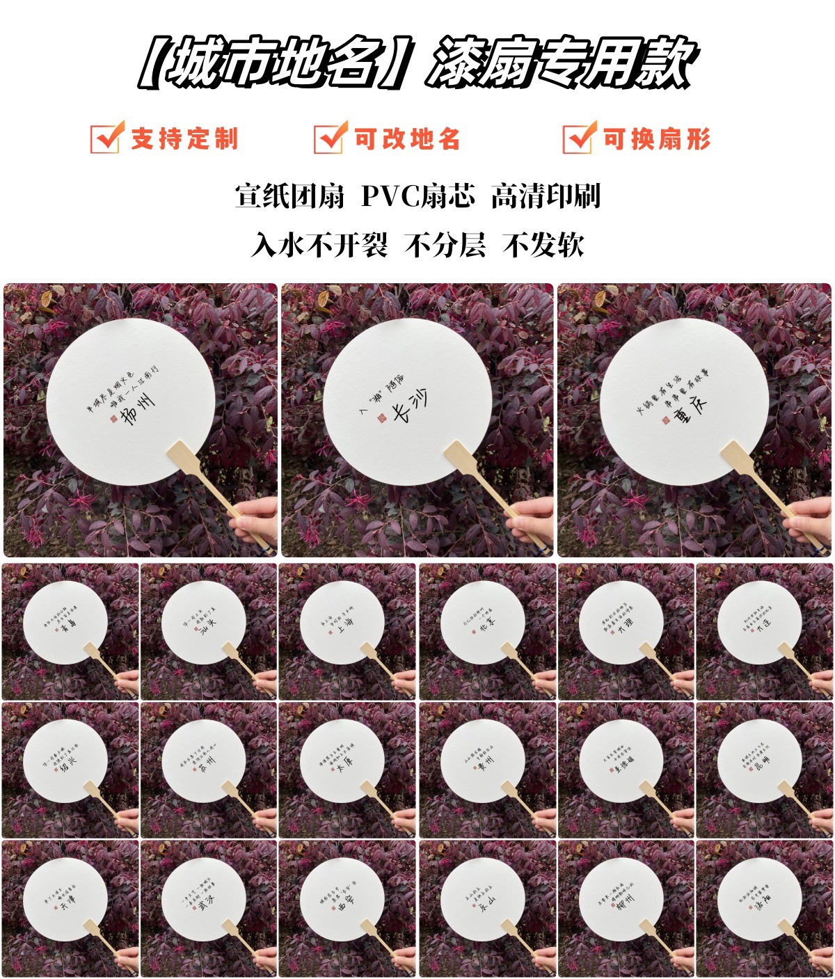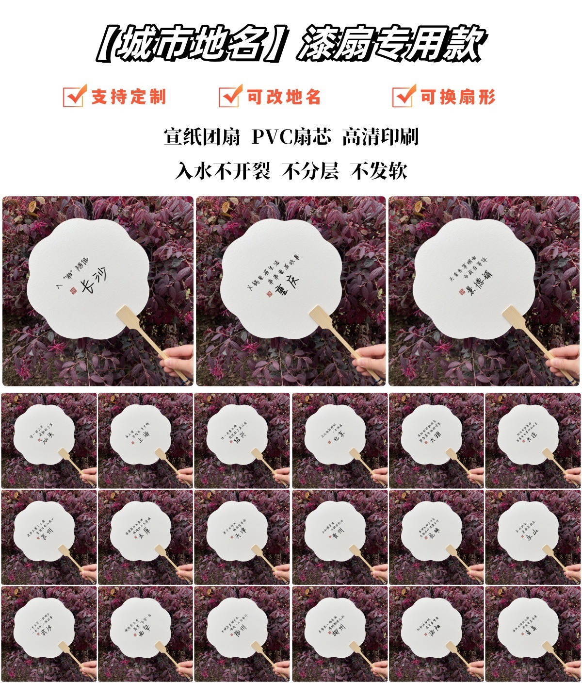 文字付き都市地名観光地区写真漂着うちわ江蘇ランドマーク長沙観光スポットうちわ専用扇子