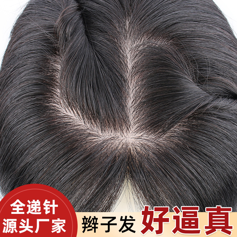 双递针女士头顶补发片辫子发全手织仿真头皮假发片遮白发假发批发