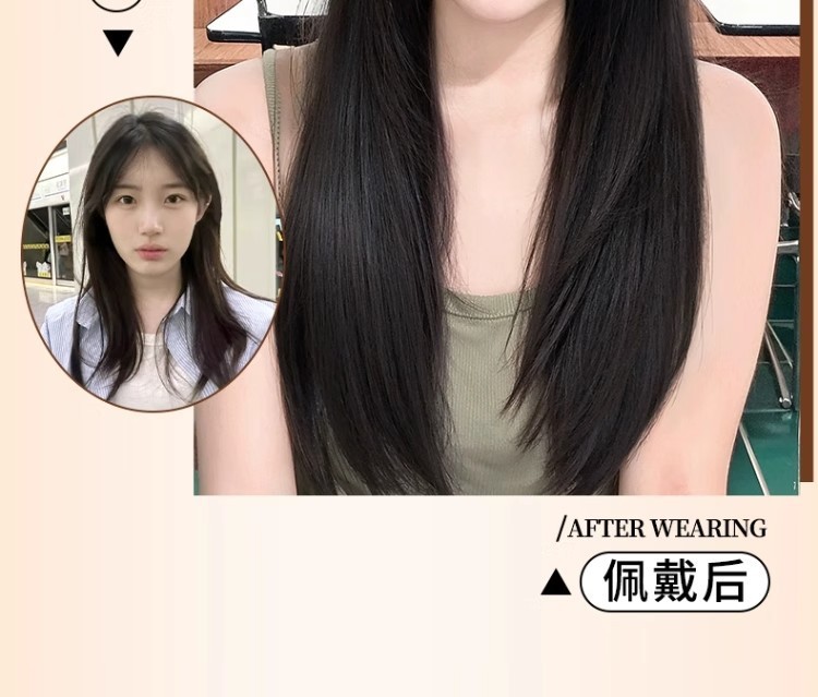 ロングヘアの女性用ウィッグ、スリーピースシームレスウィッグパッチ、ストレートヘアエクステンション、目に見えない人工毛増量エクステンション