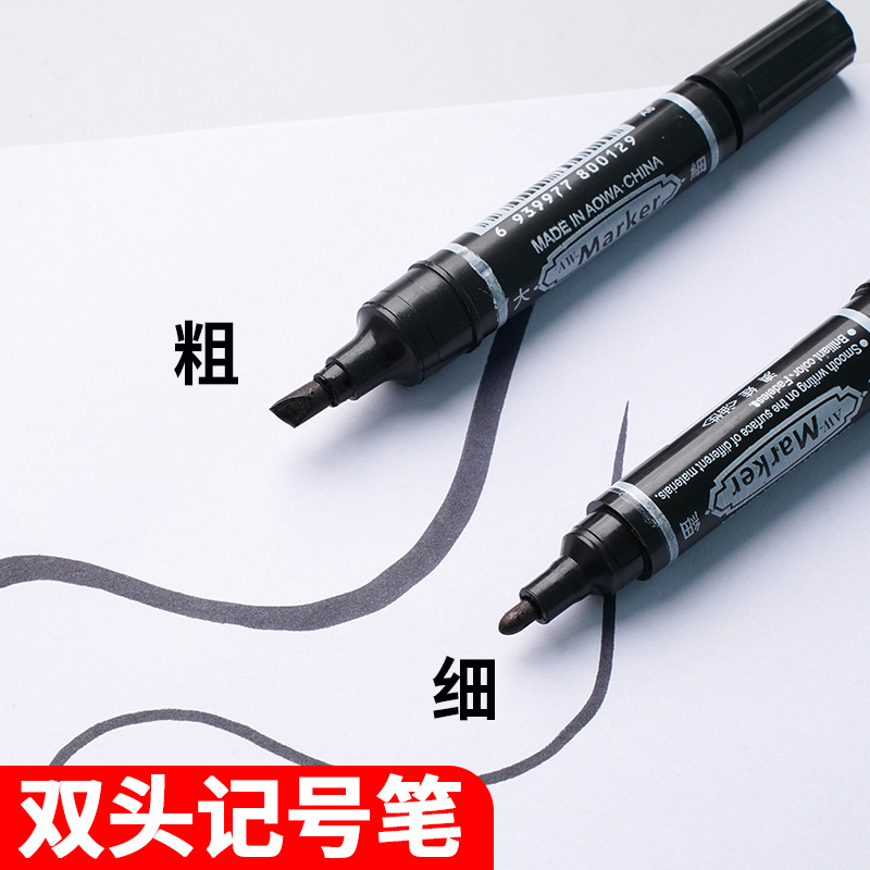 大きな両頭の油性マーカーの黒いマーカーの両頭の太さと細い防水は色を落とさないで、フラットヘッドの大容量のペンです。