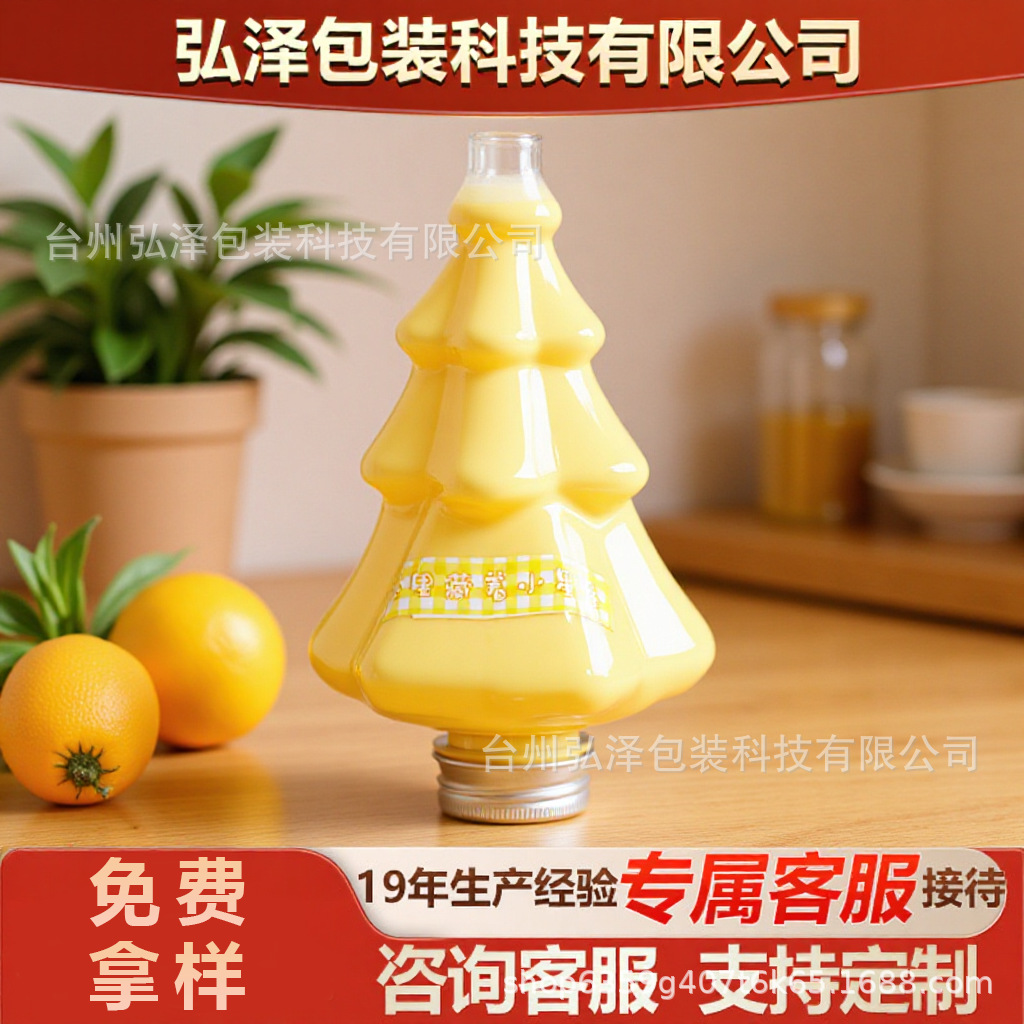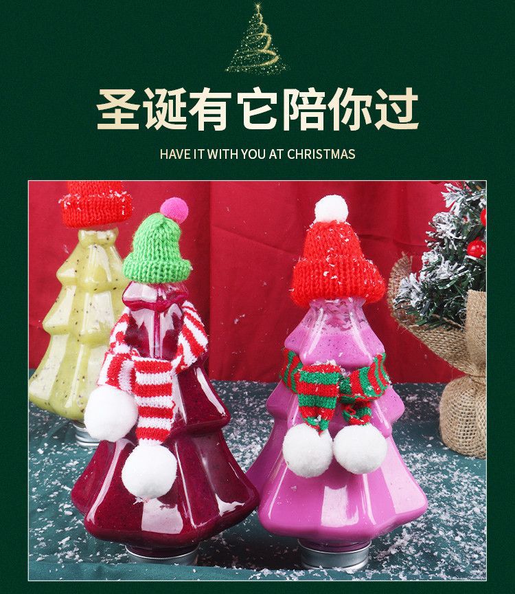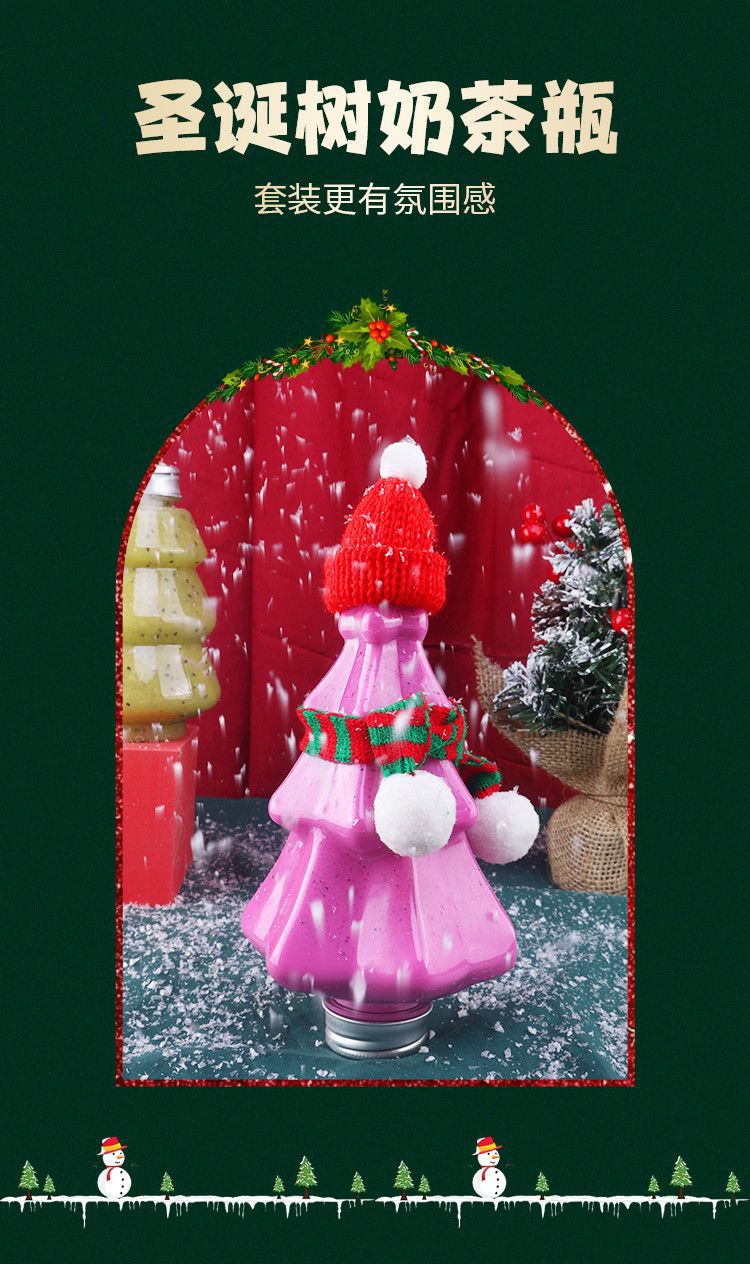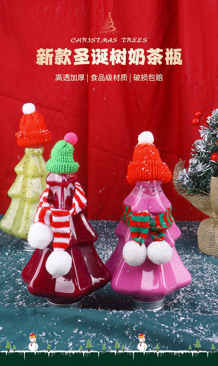 可爱圣诞树奶茶瓶创意透明商用果汁瓶400mlpet材质食品级塑料瓶