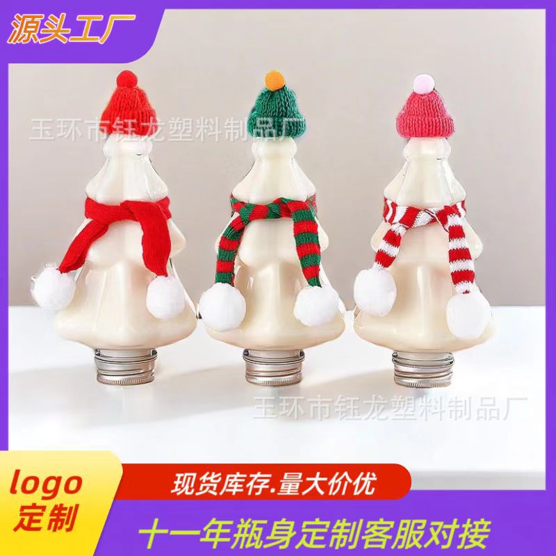 400mlクリスマスツリー哺乳瓶透明食品級プラスチック瓶創意クリスマス商用ジュース飲料瓶