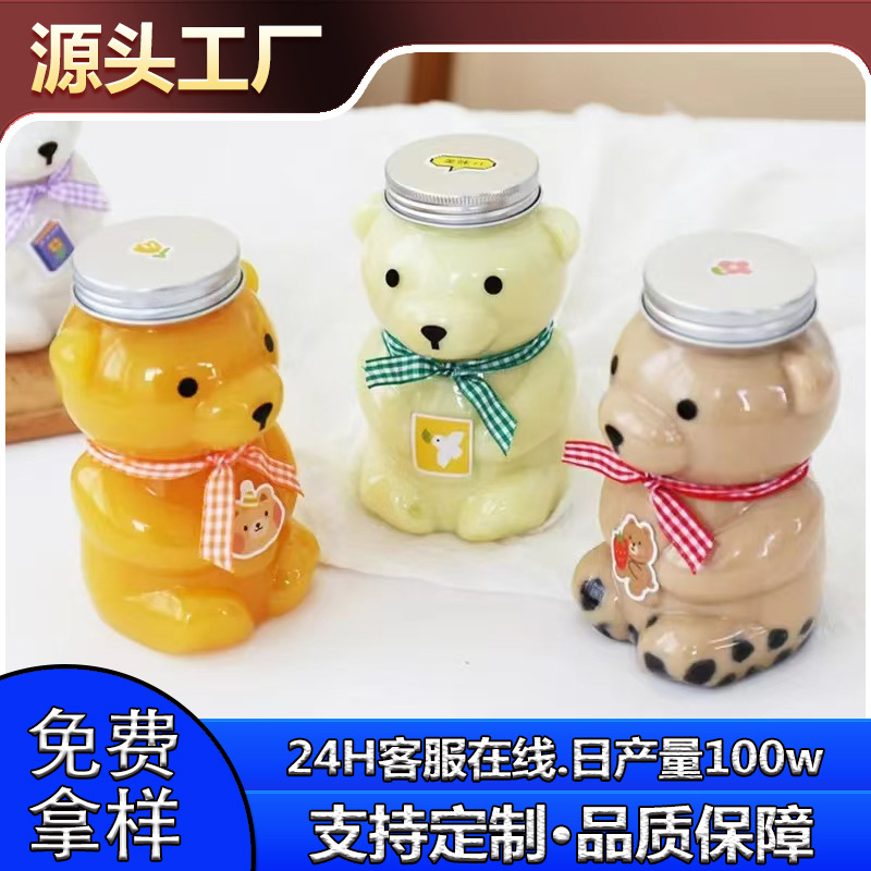 500mlの小熊ミルクティーボトル、53口クリエイティブな座り熊飲料ボトル、透明なテイクアウト用蓋付き食品グレードPETプラスチックボトル