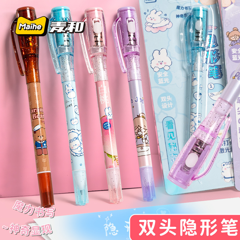 麦とステルス蛍光ペンランプ付き透明蛍光ペン発光夜光灯照星顕字ペンダブルヘッド紫外線ペン