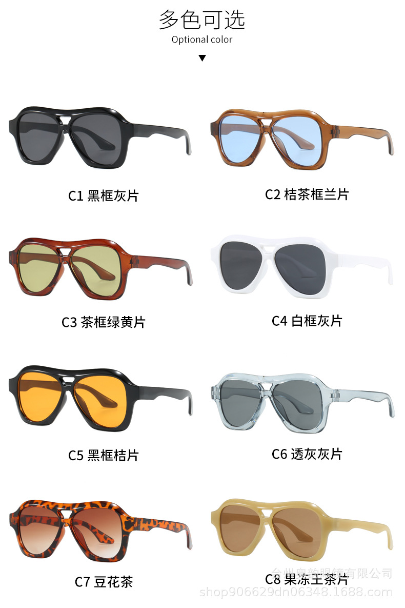 新款跨境休闲时尚飞行员式太阳镜防紫外线个性欧美可街拍网红墨镜