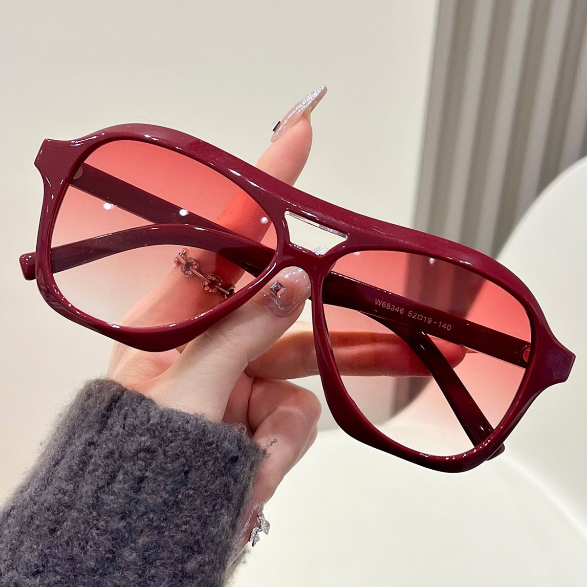 双梁飞行员太阳镜女高级感酒红色米钉个性蛤蟆镜防晒素颜遮阳墨镜