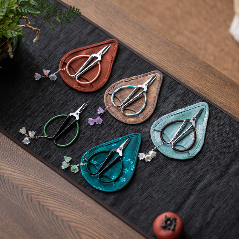 国風ミニ家庭用茶芸小ハサミ創意ロープ付茶袋小茶切多機能カンフー茶道部品