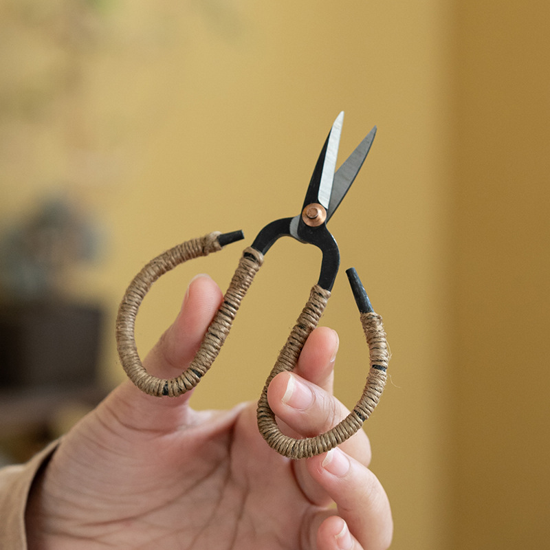 優茶道手作り麻縄茶用カットレトロ旧式鍛造小ハサミ茶芸茶葉包カット茶具アクセサリー