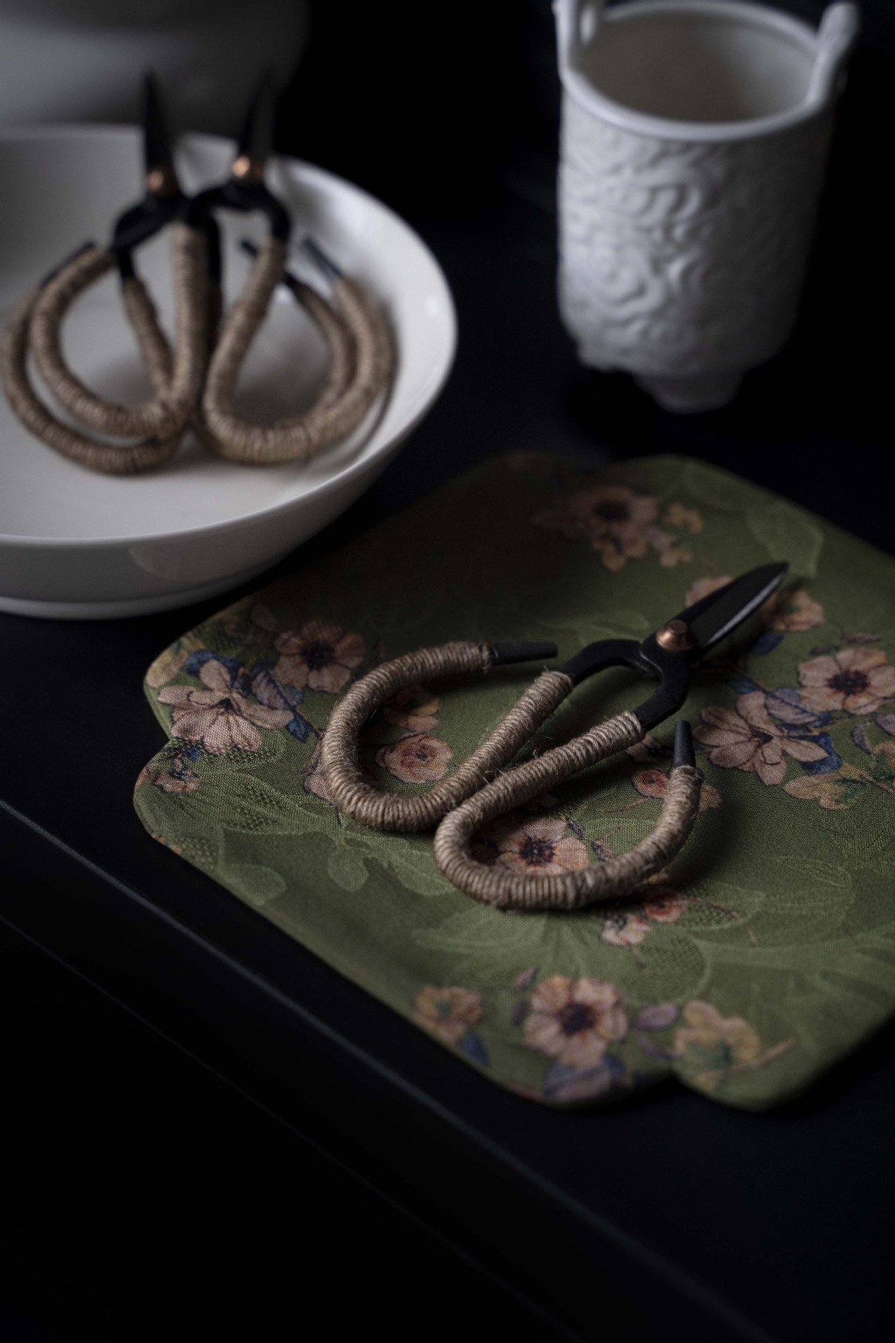 古びた小さなティーシザー(結ばれたロープ)