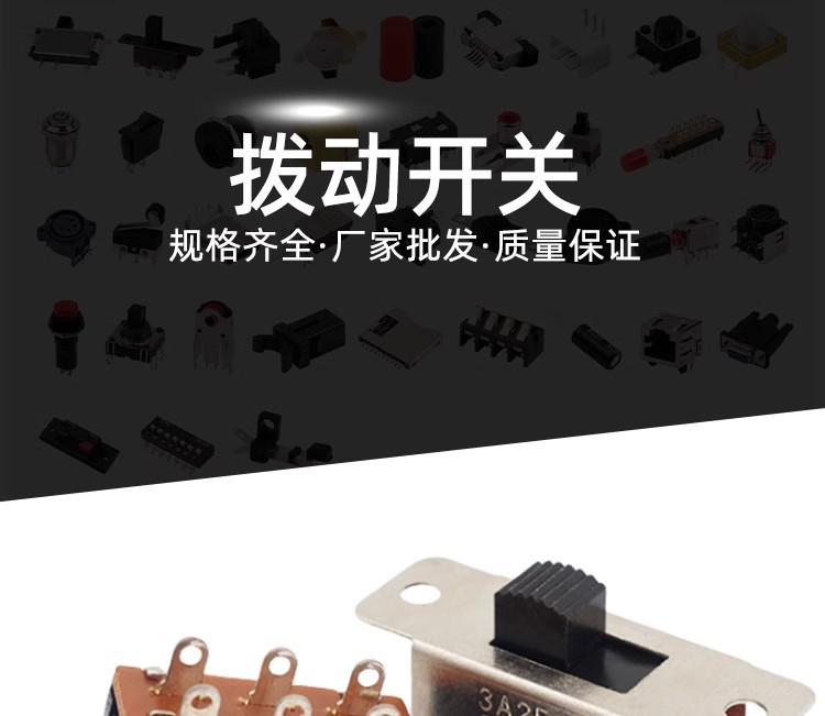 厂家直供含弹片SS-23D07拨动开关蓝牙音响八脚三挡立式滑动开关