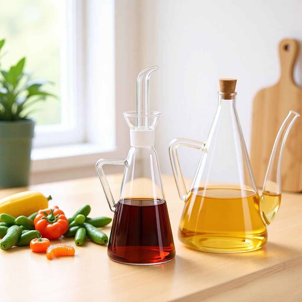 ガラス製オイルポット、家庭用キッチン調味料ボトル、酢、ごま油、調味料ボトル、酢ポット、薄口醤油、料理酒、分注ボトル、醤油ボトル