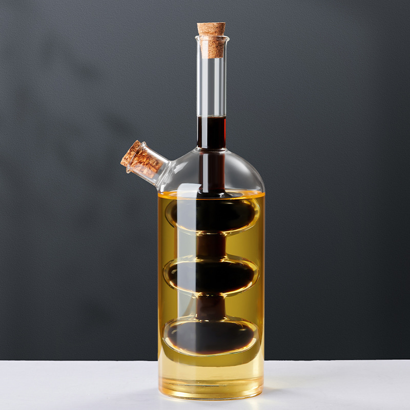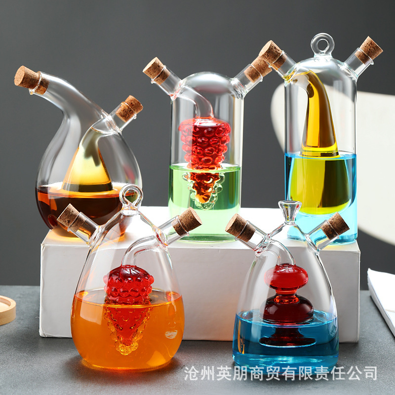 高ホウ素シリコンガラス調味料瓶家庭用キッチン醤油酢両用調味料瓶二合一口油壺