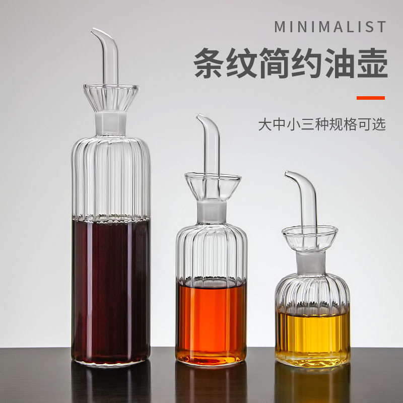 高ホウケイ酸ガラスクリエイティブキッチンオイルとビネガーボトルオイルポット家庭用オイルボトル調味料ボトルストライプソース酢オイルポット