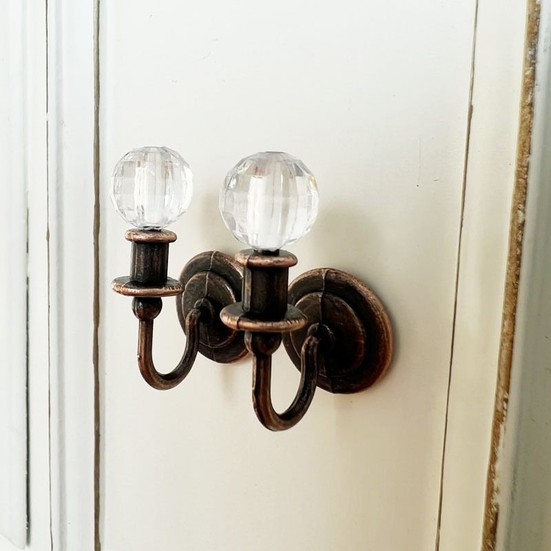 仿真水晶壁灯一对,金色底座,精致高档,放在娃娃屋的墙壁上非常抢眼,推荐款!不可亮的哦